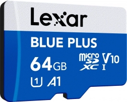 Kortet Lexar microSDXC Blue Plus 64 GB er designet til hurtig optagelse, afspilning og overførsel af multimedier. Det tilbyder A1-ydelse for mere smidig appdrift og klassen UHS‑I U1 / V10 for pålidelig optagelse af Full HD‑video. Læsehastighed op til 100 MB/s fremskynder sikkerhedskopiering og overførsel til computeren.