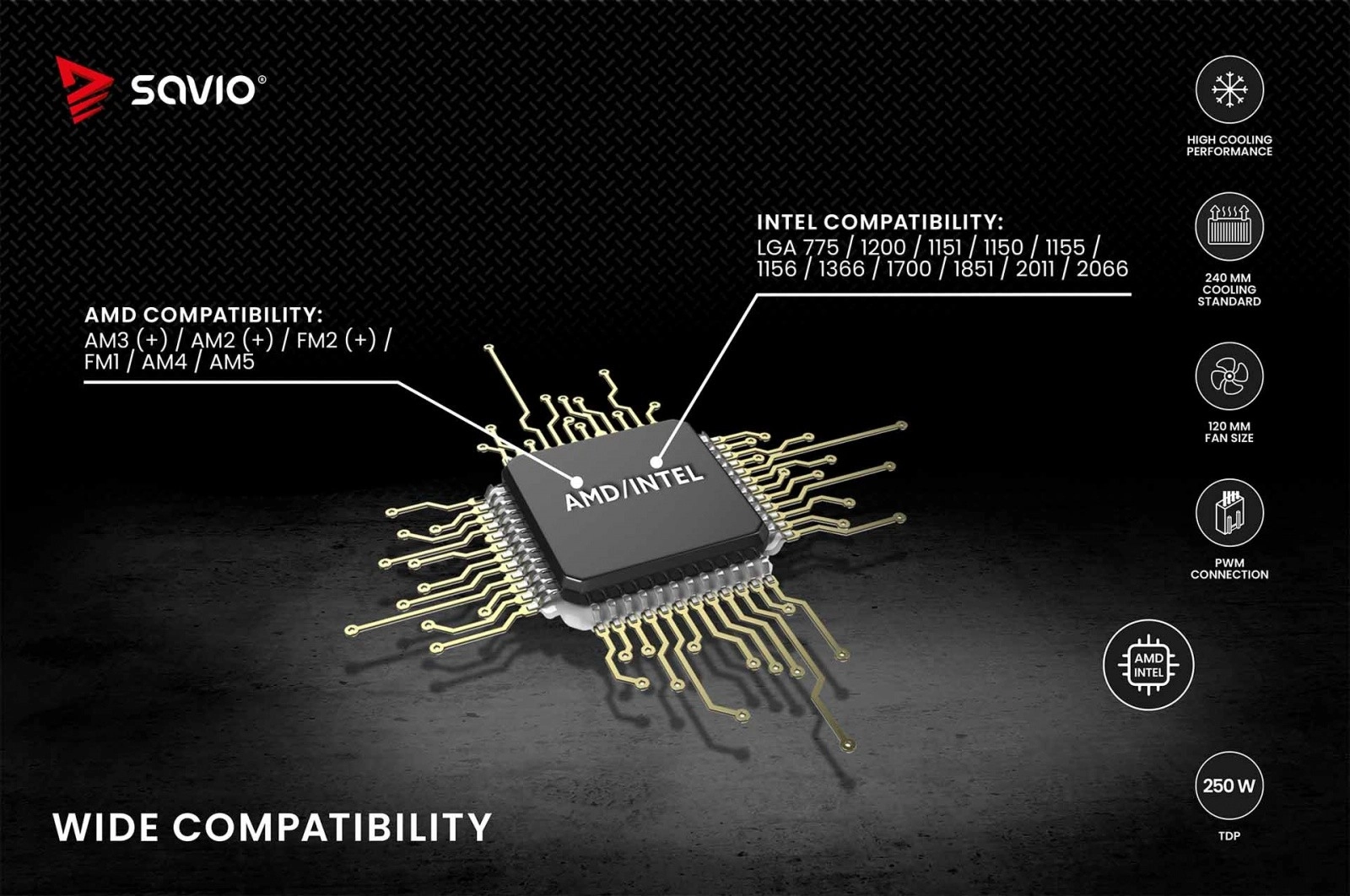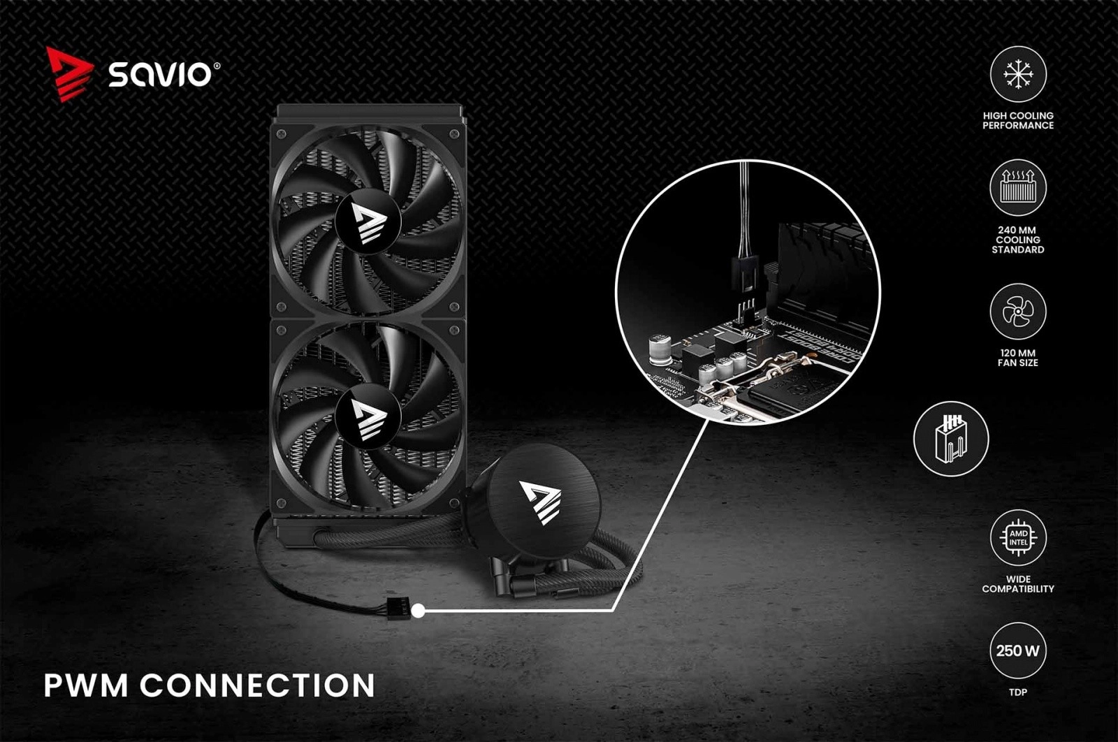 Der medfølger 2× 120 mm PWM-blæsere med et bredt omdrejningsområde for optimal luftgennemstrømning og lavt støjniveau. 4-pin PWM-styring muliggør automatisk regulering efter CPU-temperatur, mens 3-pin pumpeforsyning sikrer nem installation og stabil drift.