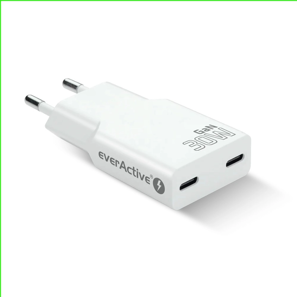 Udnyt GaN-teknologi til effektiv, køligere og hurtigere opladning i et kompakt kabinet. everActive-opladeren leverer op til 30 W via USB‑C Power Delivery – ideel til smartphones, tablets og mindre elektronik.