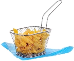 Den effektfulde friturekurv bliver en favorit ved både servering og tilberedning af sprøde snacks. Den robuste konstruktion i rustfrit stål sikrer lang holdbarhed og nem vedligeholdelse. Det lange håndtag giver et sikkert greb og gør det nemt og komfortabelt at løfte kurven op af olien.