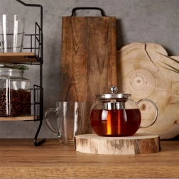 Oplev en elegant måde at nyde din yndlingste uden blade i koppen. Kanden af klart borosilikatglas gør det muligt at kontrollere infusionens styrke, mens det fine filter i rustfrit stål holder tebladene sikkert inde. Takket være et volumen på 800 ml tilbereder du en ideel portion til dig selv og dine gæster.