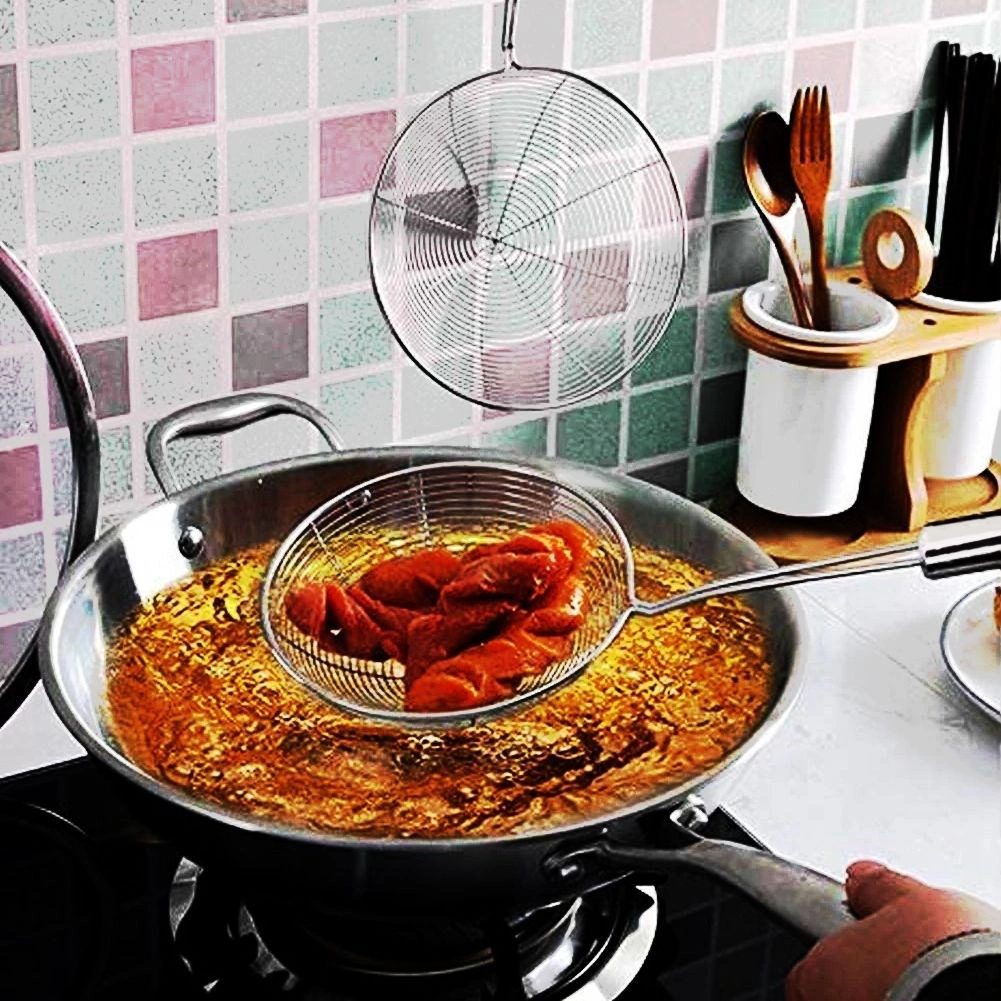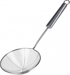 Det brede trådhoved giver lynhurtig afdrypning af vand eller olie og nem optagning af dumplings, pasta eller pommes frites.