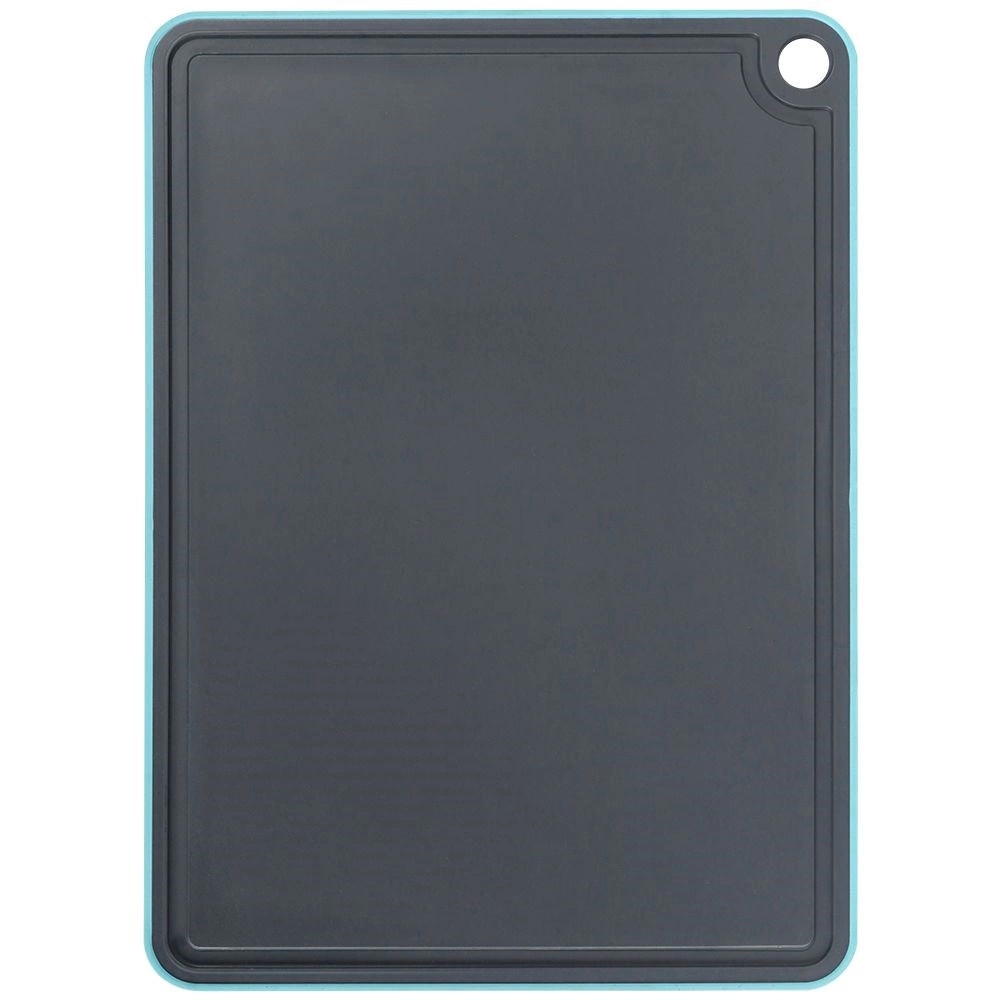 Praktisk skærebræt i størrelsen 35,5 × 26 cm til daglig madlavning. Har en robust plastoverflade, skridsikker kant, saftrille mod spild og ophængshul. Materialet absorberer hverken lugte eller væsker og er let at rengøre, også i opvaskemaskinen.