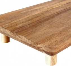 Dette træbræt kombinerer funktionalitet og moderne udseende. Takket være de fire solide ben løfter brættet serverede lækkerier elegant og gør det samtidig nemmere at skubbe de skårne råvarer sammen. Akacietræ er naturligt modstandsdygtigt over for fugt og vridning, tørrer hurtigt og optager ikke lugte.