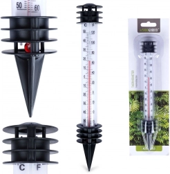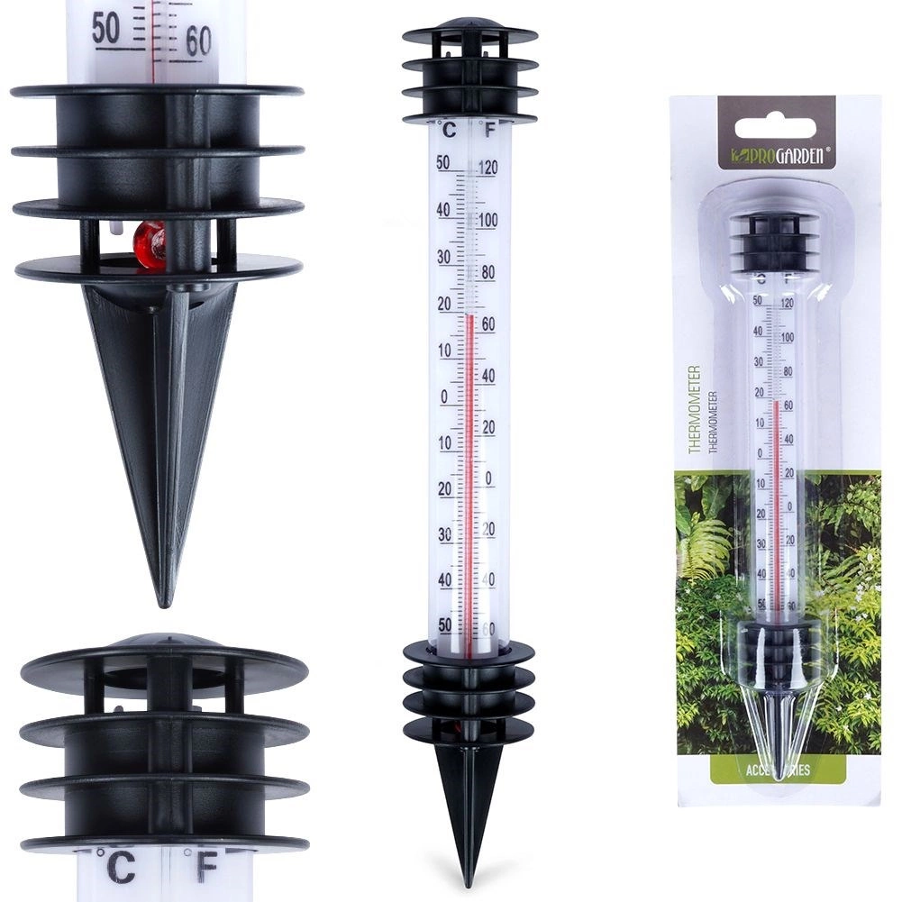 Let og holdbar plast tåler vejret, og spidsen stikkes nemt i jorden i græsplæne, bed eller potte. Det klassiske, diskrete design passer til enhver udendørsindretning og gør daglig temperaturkontrol ved drivhus, bede og terrasse enkel. Originalt produkt fra PROGARDEN, fremstillet efter europæiske standarder.