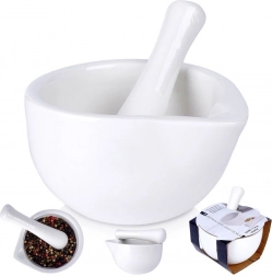 Hele sættet er fremstillet af kvalitetsporcelæn i hvid. Den u-polerede skål-inderside øger friktionen og fremskynder knusningen selv af hårde korn og frø.