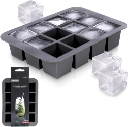 Praktisk silikoneform til is danner 12 store firkantede terninger på 3,5 × 3,5 × 3,5 cm. Takket være den fleksible silikone kan terningerne nemt tages ud, de smelter langsommere og holder dine drikkevarer kolde længere uden unødig fortynding. Formen er nem at rengøre og tåler opvaskemaskine.