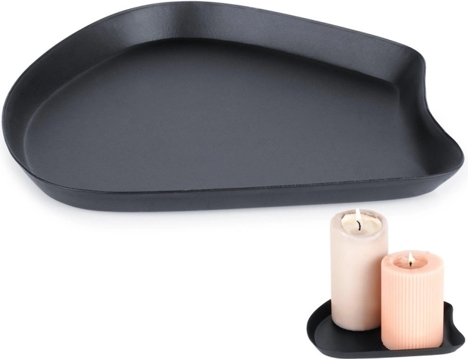 Den ujævne form og de hævede kanter giver et moderne udtryk og beskytter samtidig overflader – de opfanger eventuelle voksdråber og øger stabiliteten for placerede lys. Perfekt til sofabord, kommode eller hylde og understreger din indretnings stil.