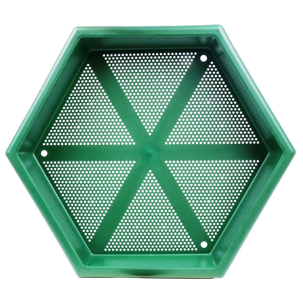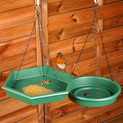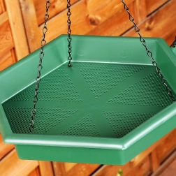 Den sekskantede bakke med perforeret bund leder regnvand væk og begrænser mugdannelse i frøene. Ideel til fodring året rundt.