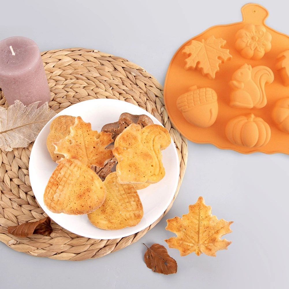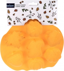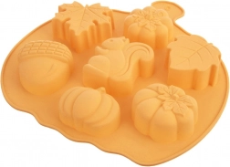 Denne kvalitets-silikoneform med motiver af blade, græskar, agern og egern giver dine småkager, muffins eller praliner et attraktivt efterårslook. Formens mål 26 × 25 × 3 cm og hulrum på ca. 6,5 × 6 cm sikrer flot formede og jævnt bagte desserter.