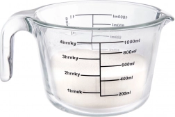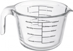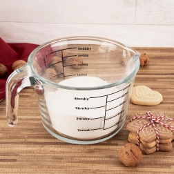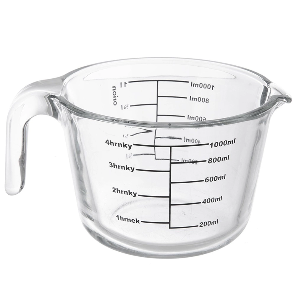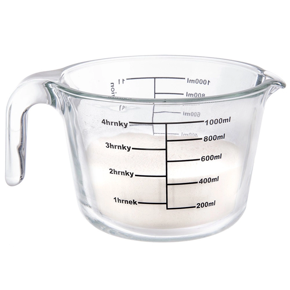 Målebægeret måler i milliliter fra 200 til 1000 ml (i trin på 200 ml), i liter fra 1/4 l til 1 l og i kopper fra 1 til 4. Det robuste borosilikatglas tåler ekstreme temperaturforskelle, så målebægeret kan komme i køleskab, mikrobølgeovn og ovn.