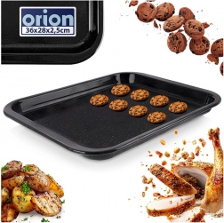 Praktisk og holdbar bageplade af emaljeret stål i målene 36 × 28 × 2,5 cm, perfekt til kager, småkager og salte retter. Den glatte overflade gør rengøringen let, tåler opvaskemaskine, og takket være de højere kanter slipper du for, at saft eller dej løber ud. Dokumenteret kvalitet fra ORION.