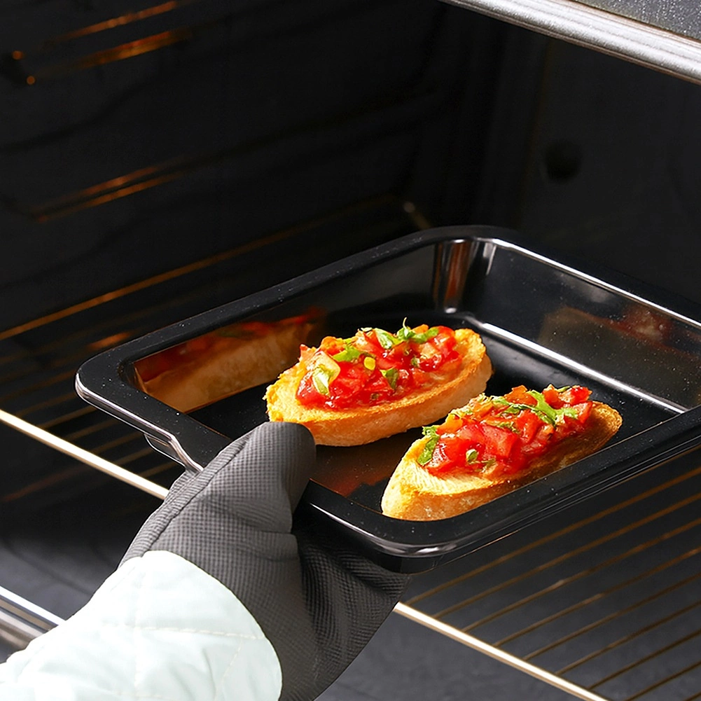 De højere kanter på 5 cm forhindrer, at safter og saucer løber ud, hvilket gør håndteringen lettere og flytning af bradepanden mere sikker. Den universelle størrelse passer i de fleste hjemmeovne og leverer pålidelig ydeevne i daglig brug.