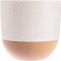 Stilfuldt krus i kvalitetskeramik i et tidløst tofarvet design, der imponerer med et rent look og høj praktikalitet. Volumen på 290 ml er ideel til hverdagens yndlingsvarme drikke. Den let prikkede overflade og den nederste sten-/terracottadel giver kruset et naturligt, moderne præg.