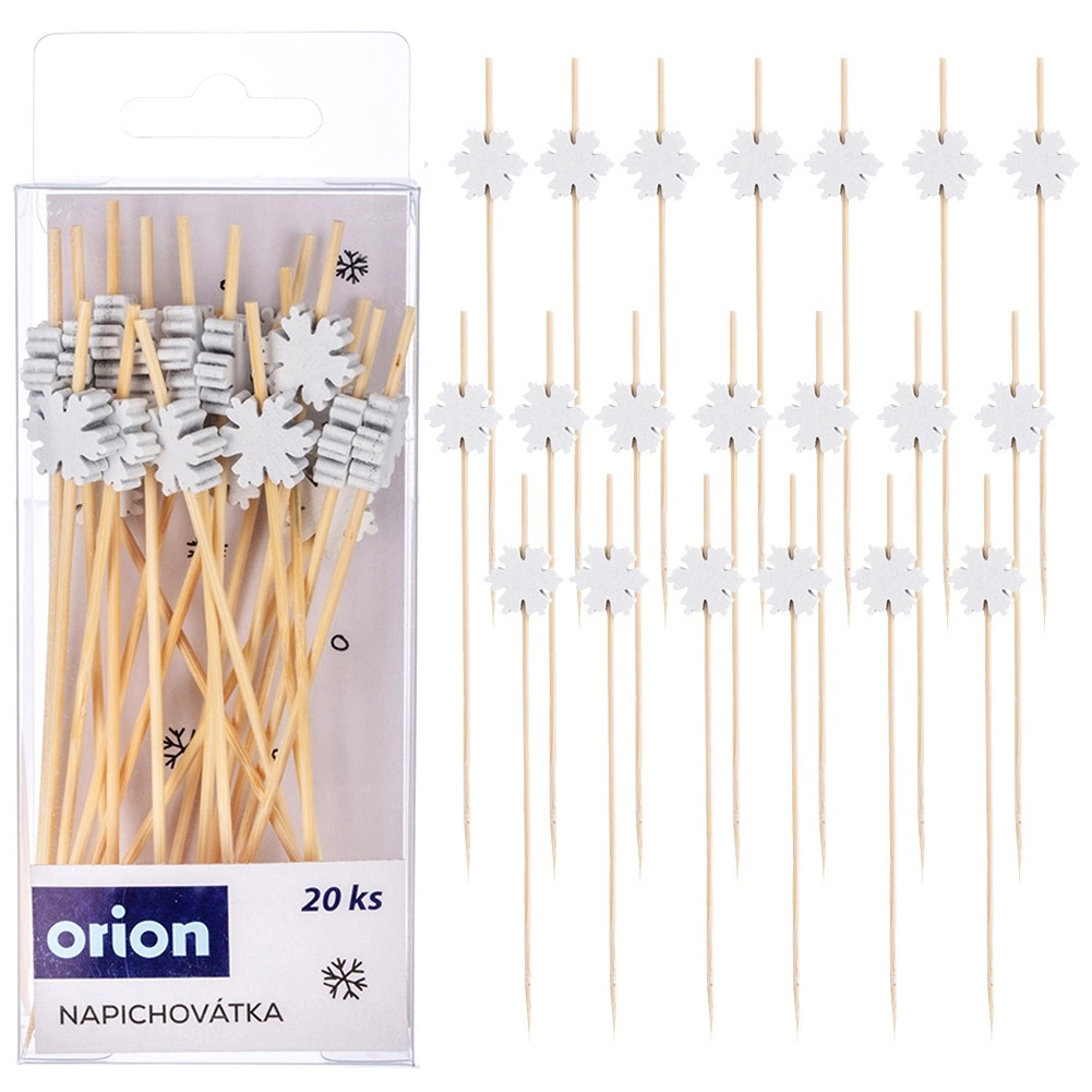 Giv serveringen et elegant vinterligt præg. Hvert spyd er udsmykket med et diskret hvidt snefnug, som fremhæver præsentationen af kolde fade, anretninger og søde hapsere. De naturlige materialer er sikre til fødevarekontakt og behageligt lette.