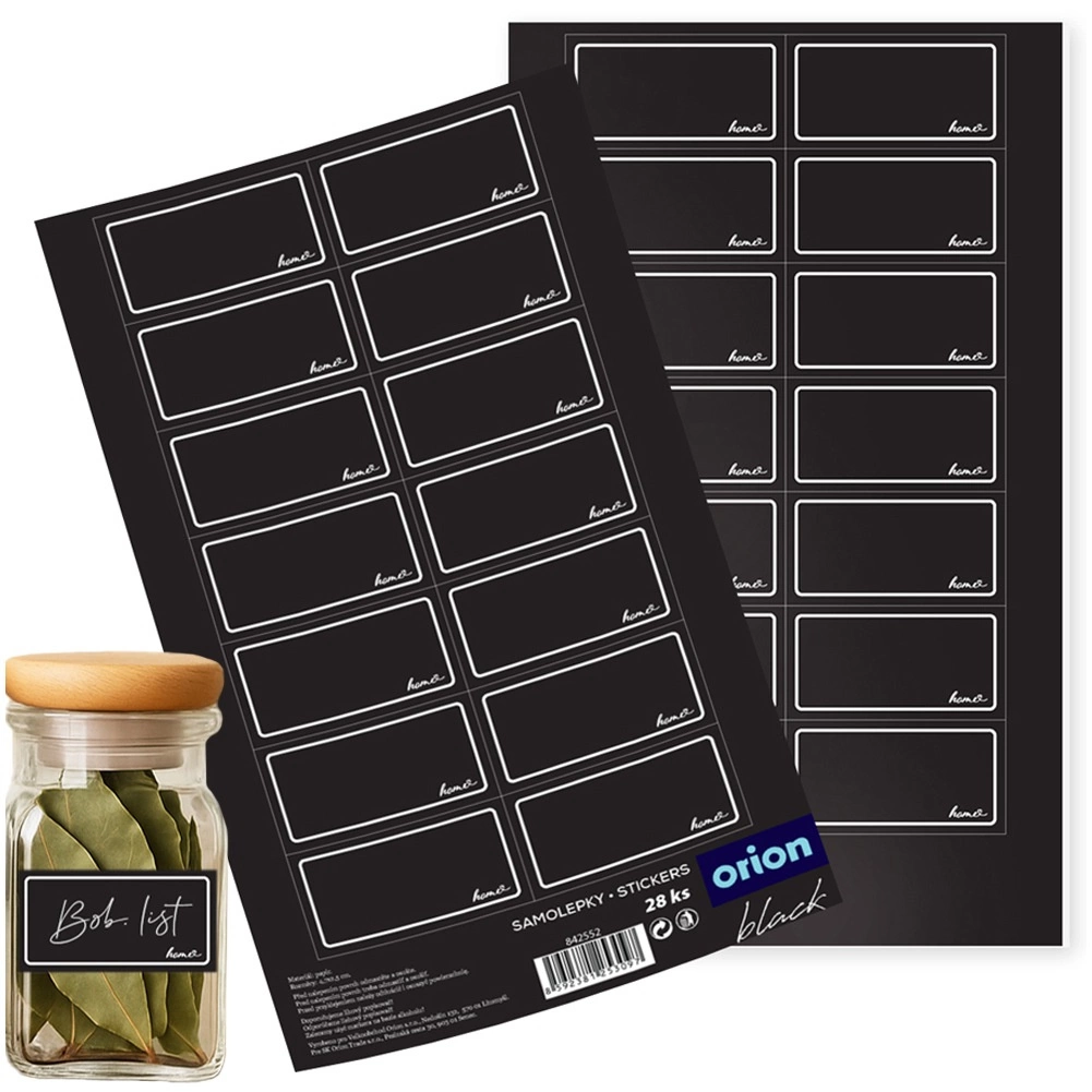 Hold køkken og spisekammer organiseret med elegante sorte etiketter, der takket være selvklæbende lag let fæstner på glas, plast og andre glatte overflader. Overfladen er lamineret for længere holdbarhed og et rent udseende, hver etiket har en diskret tekst “home” og et afmærket felt til beskrivelse.