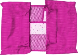Den lyserøde seng med metalramme er ideel til leg både hjemme og udendørs. Den er bærbar og let.