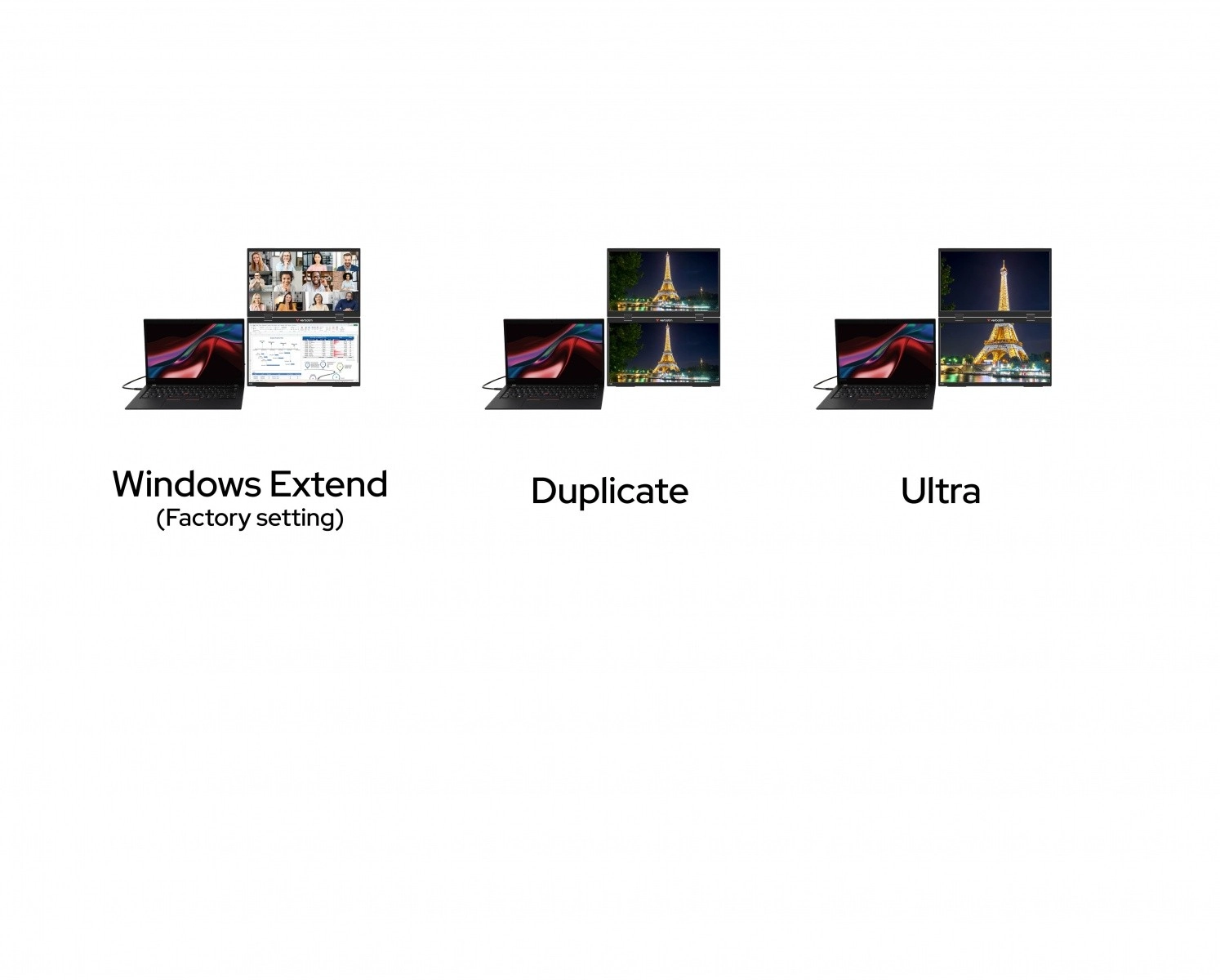 Få dobbelt så meget arbejdsplads med to 15,6" paneler. Del nemt opgaver, vinduer og apps uden at skifte mellem dem.