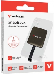 Verbatim SnapBack er en hurtig og pålidelig ekstern SSD, som takket være MagSafe‑magneter fastgøres sikkert på bagsiden af din iPhone. Den muliggør direkte optagelse i Apple ProRes 4K/60 fps uden at overbelaste telefonens interne lager og accelererer dit mobile workflow.