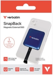 Skab indhold uden kompromiser. Verbatim SnapBack Magnetic SSD klæber til din kompatible smartphone ved hjælp af stærke magneter og giver øjeblikkelig, stabil og sikker tilslutning uden holdere og klæbemidler. Takket være understøttelse af Apple ProRes 4K/60 fps gemmer du optagelser direkte på disken, så telefonens interne hukommelse ikke begrænser dig.