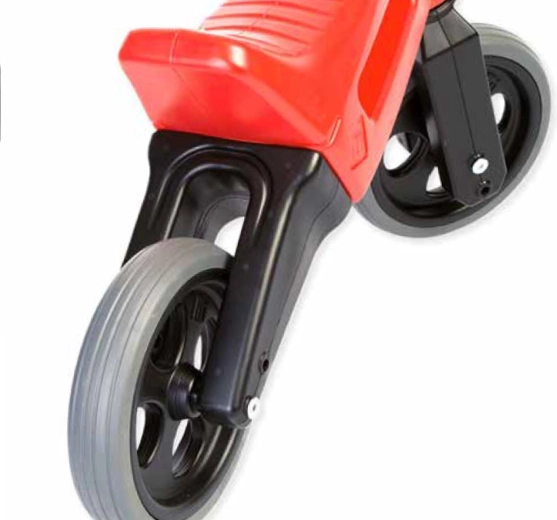 Løbecyklen har stille dæk med godt greb, glat og sikker finish i robust, ugiftig plast samt begrænset styrudslag, så styret ikke drejer for langt. Børn træner naturligt deres balance, koordination og motorik og får masser af sjov både inde og ude.