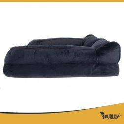 Den ortopædiske Purlov-seng S er designet til komfortabel og restituerende afslapning for hunde og katte. Kvalitetsskum med ortopædiske egenskaber reducerer trykpunkter, støtter korrekt kropsholdning og giver lindring til ældre dyr, efter operationer og til aktive kæledyr efter en krævende dag. Det luksuriøse sorte betræk med gylden quiltning tilfører indretningen et elegant præg.