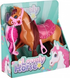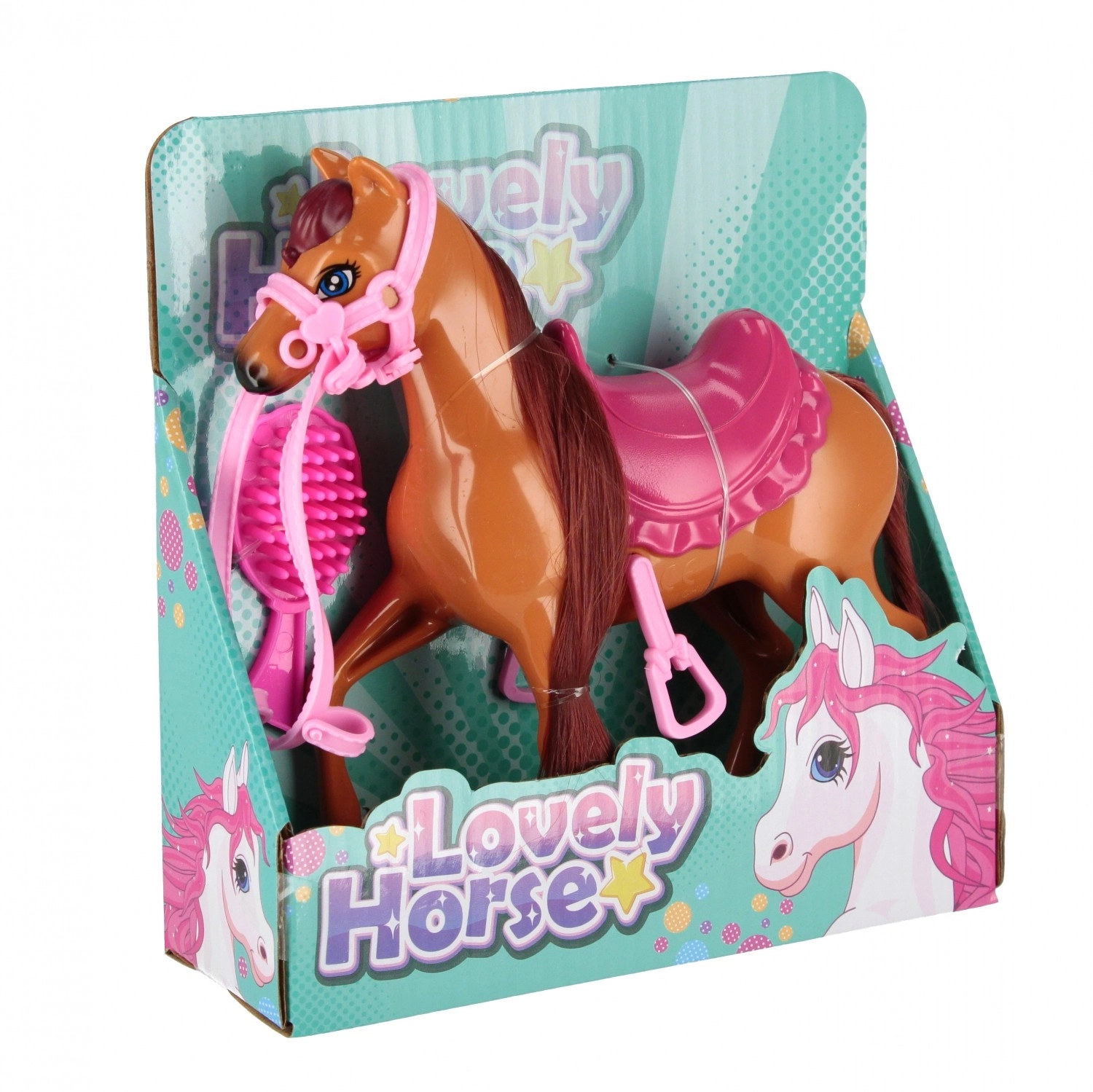 Denne realistiske hest er en fantastisk ledsager til kreative lege. Takket være den lange man og hale kan børn nyde at børste og style, mens den detaljerede sadel giver legen autenticitet. I pakken er der også et kort/børste til pleje af manen, så pasningen af hesten kan begynde med det samme.