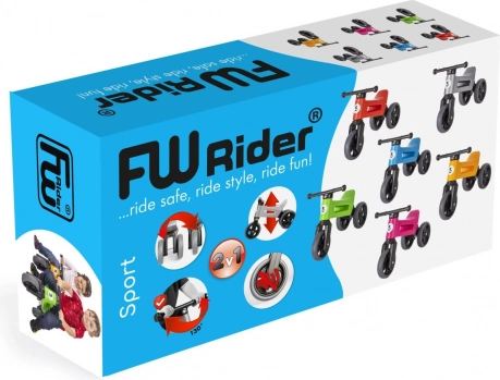 Gennemtænkte detaljer som begrænset styreudslag for at forhindre overdrejet styr, brede håndtag til at beskytte hænderne og holdbar, ugiftig plast med glatte samlinger gør Rider Sport til det ideelle valg for de første skridt på “cyklen”. Løbecyklen er let (1,9 kg), nem at bære og enkel at vedligeholde – vaskes med lunkent vand og sæbe.