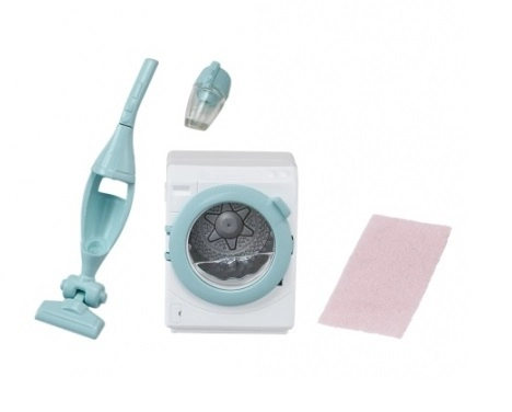 Udvid din verden af SYLVANIAN FAMILIES med en detaljeret vaskemaskine og støvsuger. Børn kan efterligne voksnes daglige aktiviteter og opleve realistiske scener takket være det drejelige hjul, som simulerer både vandpåfyldning og tromlens rotation. Den aftagelige håndstøvsuger gør det muligt at “rengøre” selv de små kroge i dukkehuset.