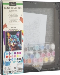Dette maling-efter-tal-sæt er et ideelt valg for både børn og voksne, der elsker dyr og ønsker at slappe af med en kreativ aktivitet. Det sorte lærred giver kattemotivet en markant kontrast og et moderne udtryk, så det færdige billede skiller sig ud i enhver indretning.