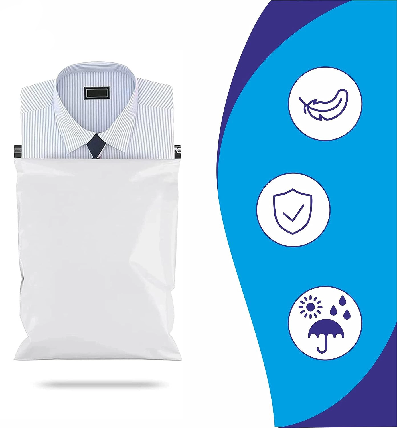 Disse hvide poly-mailers er designet til hurtig og sikker pakning. Takket være den selvklæbende peel-and-seal-strimmel kan kuverten lukkes nemt uden tape og giver en forseglet og tamper-evident (synligt brudt ved åbning) pakning. Den lave vægt reducerer fragtomkostningerne, samtidig med at den beskytter indholdet mod fugt og snavs.