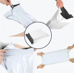 Ydersiden er stilfuldt hvid for et rent udseende, indersiden uigennemsigtig for diskretion af indholdet. Poserne er lette, hvilket hjælper med at reducere fragtomkostninger, samtidig med at de forbliver ekstraordinært modstandsdygtige over for belastninger i logistikken.