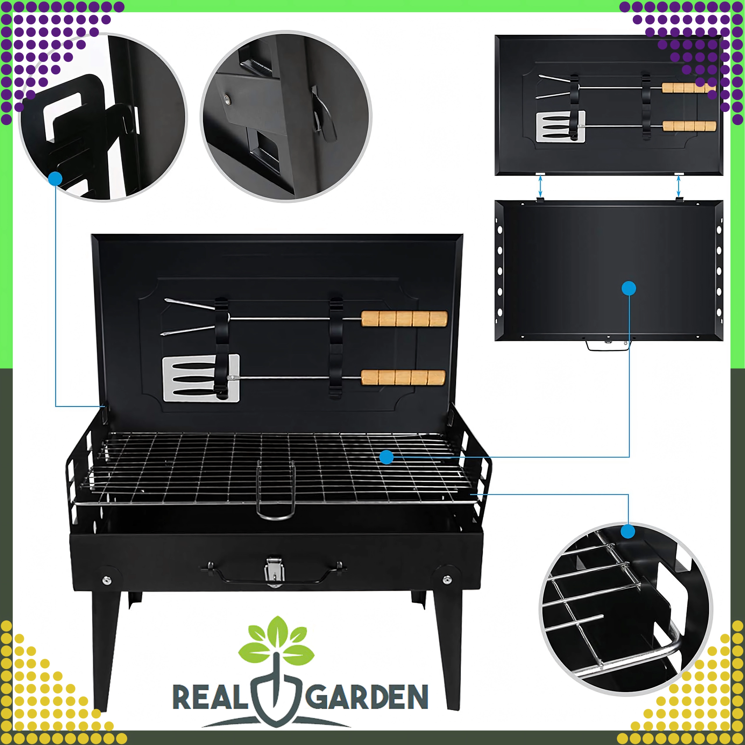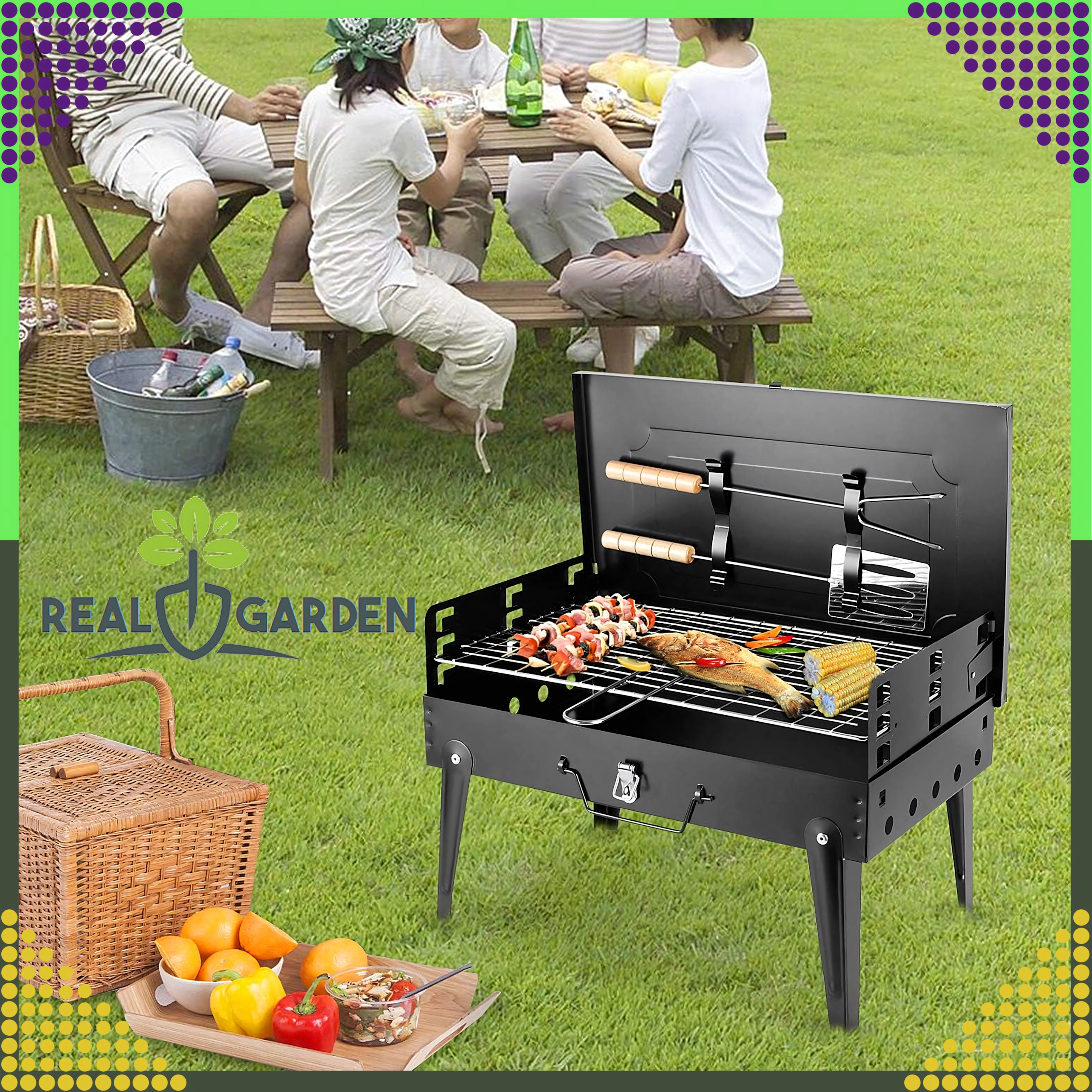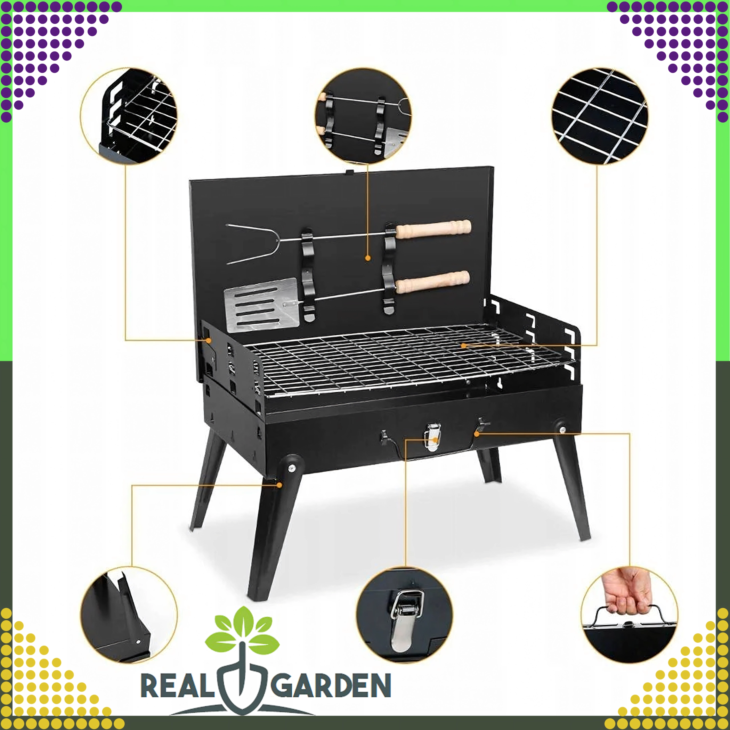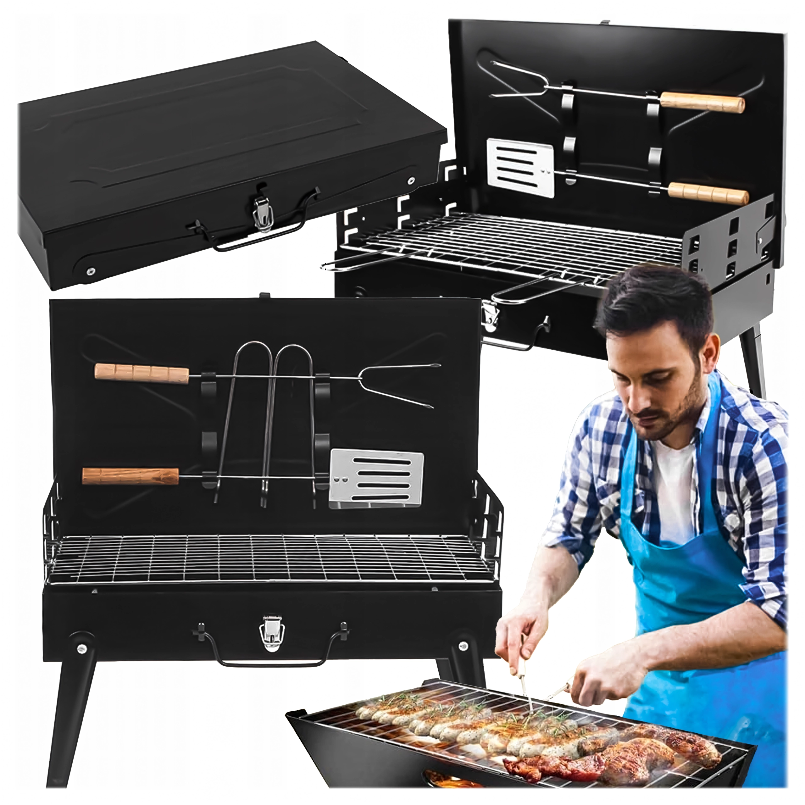 Nyd grillning hvor som helst med denne sammenklappelige og bærbare kulgrill i et praktisk kuffertdesign. Hurtig montering uden værktøj, stabil konstruktion og kompakte mål 44 × 27 × 47 cm gør den til et ideelt valg til camping, have og picnic. Inkluderer rist samt grundlæggende grillredskaber (spade, tang, spid). Ventilationsåbninger sikrer mere effektiv forbrænding og hurtigere tilberedning.