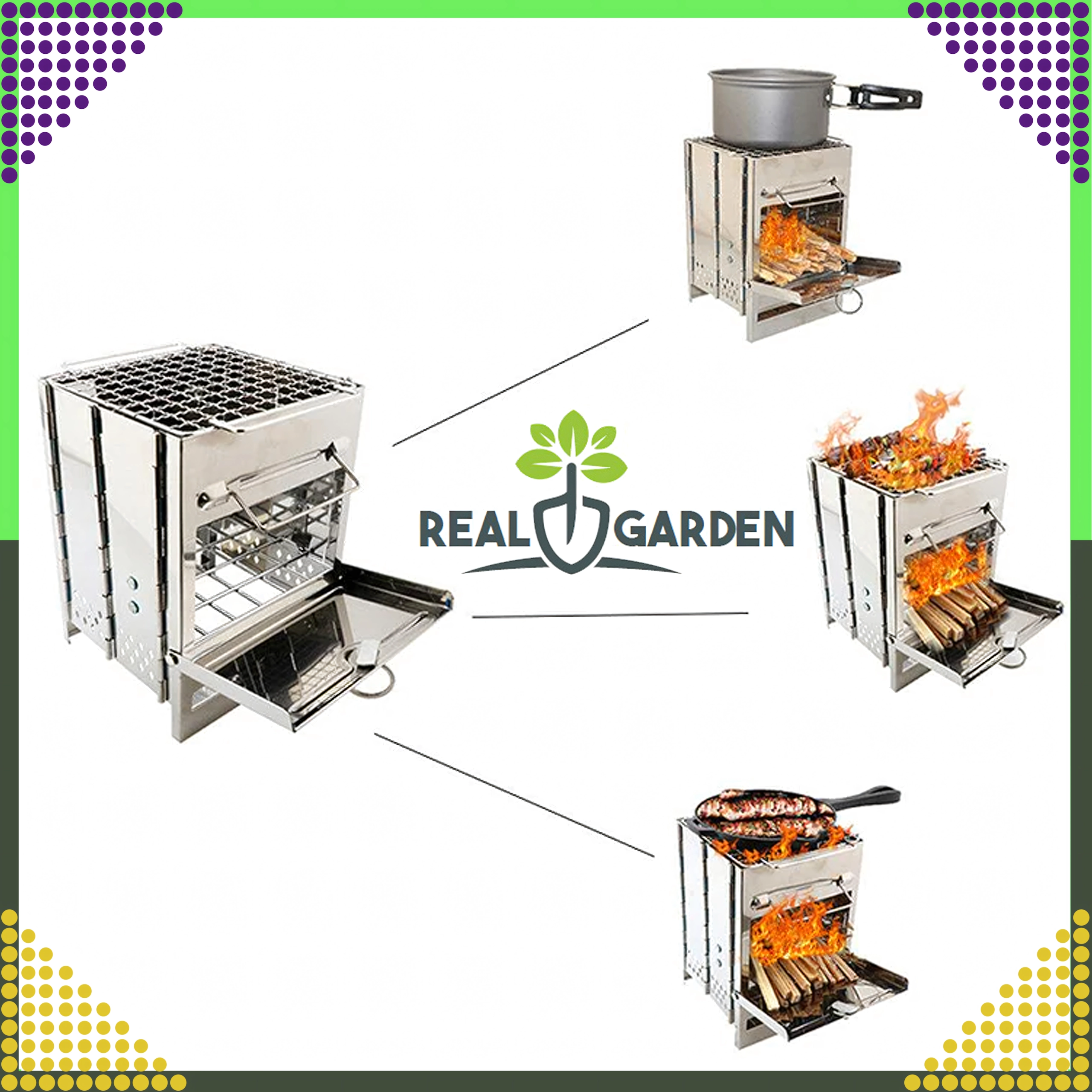 Raket-campingkomfuret er ideelt til hurtig opkogning af vand og tilberedning af varme måltider i felten. Takket være skorstenseffekten opnår det højere temperaturer og sikrer effektiv forbrænding. Konstruktionen i rustfrit stål er modstandsdygtig over for høje temperaturer, mens de åbningsbare låger og de mange ventilationshuller gør det nemt at lægge brændsel på og regulere flammen.
