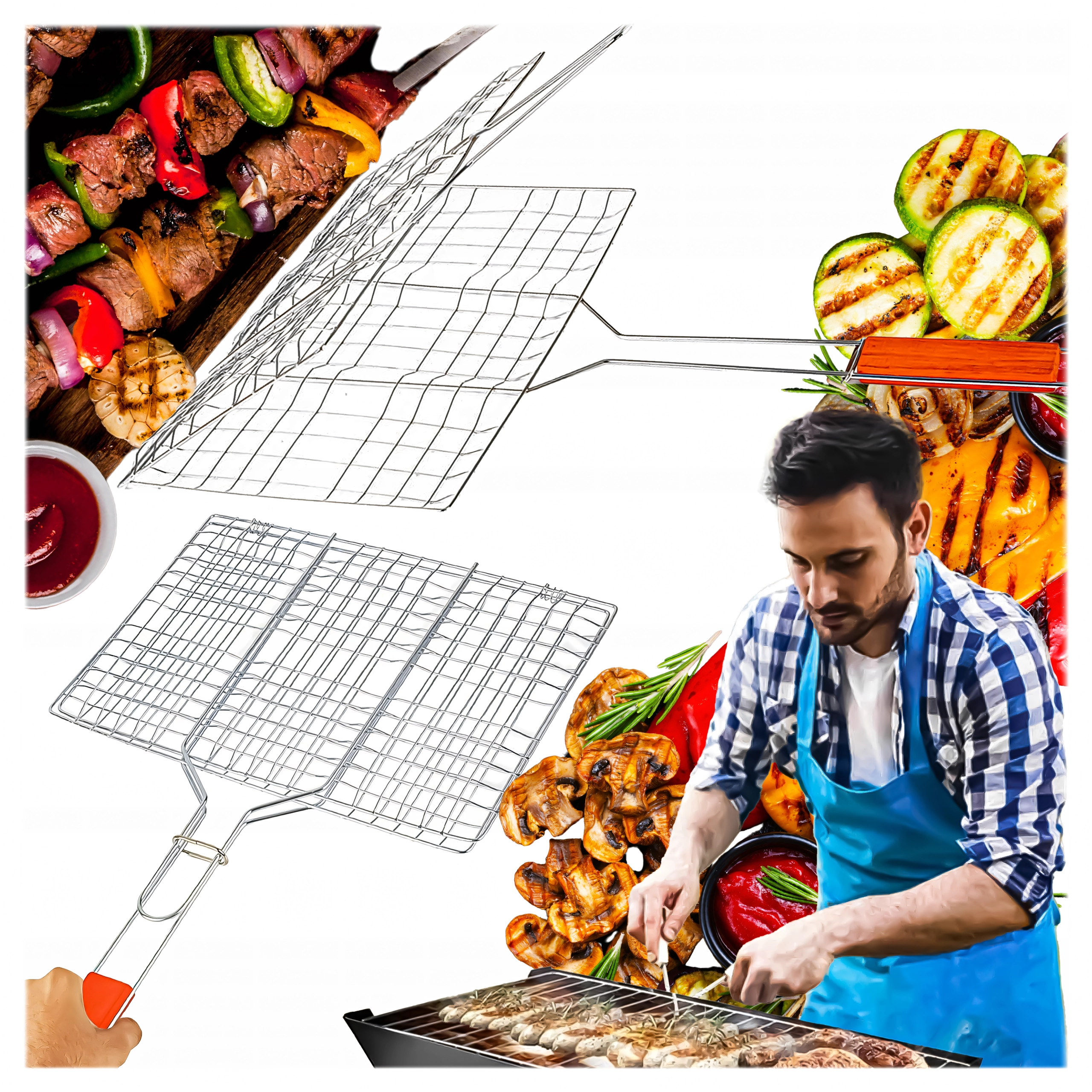 Farvel til smuldrende stykker og fastbrænding – denne dobbeltsidede rist med låsbar gitter holder maden sikkert på plads og gør det nemt at vende alt på én gang med det ergonomiske træhåndtag. Et fremragende valg til grillning i haven, i sommerhuset eller på camping.