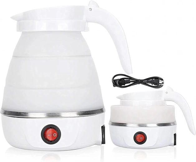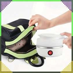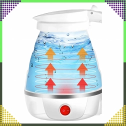 Denne sammenklappelige elkedel er designet til rejser – når den er foldet, fylder den minimalt, og udfoldet giver den op til 0,6 l varmt vand til te, kaffe eller instantmad. Silikonekroppen er fleksibel, robust og let at vedligeholde, og det solide håndtag sikrer sikker hældning.