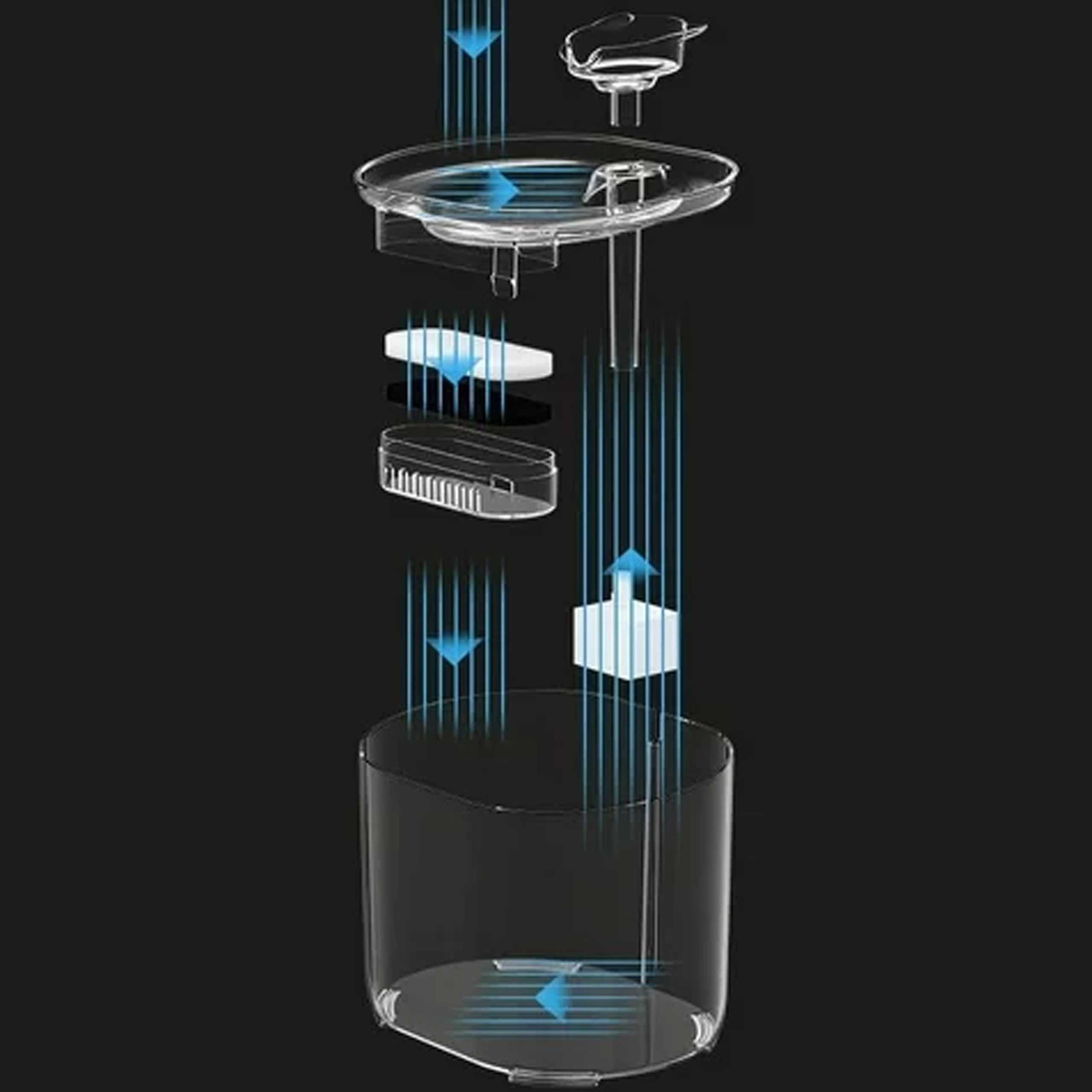 Den jævne vandstrøm øger tiltrækningen for dyrene og begrænser ophobning af urenheder. Vandet smager bedre, og kæledyrene drikker oftere.