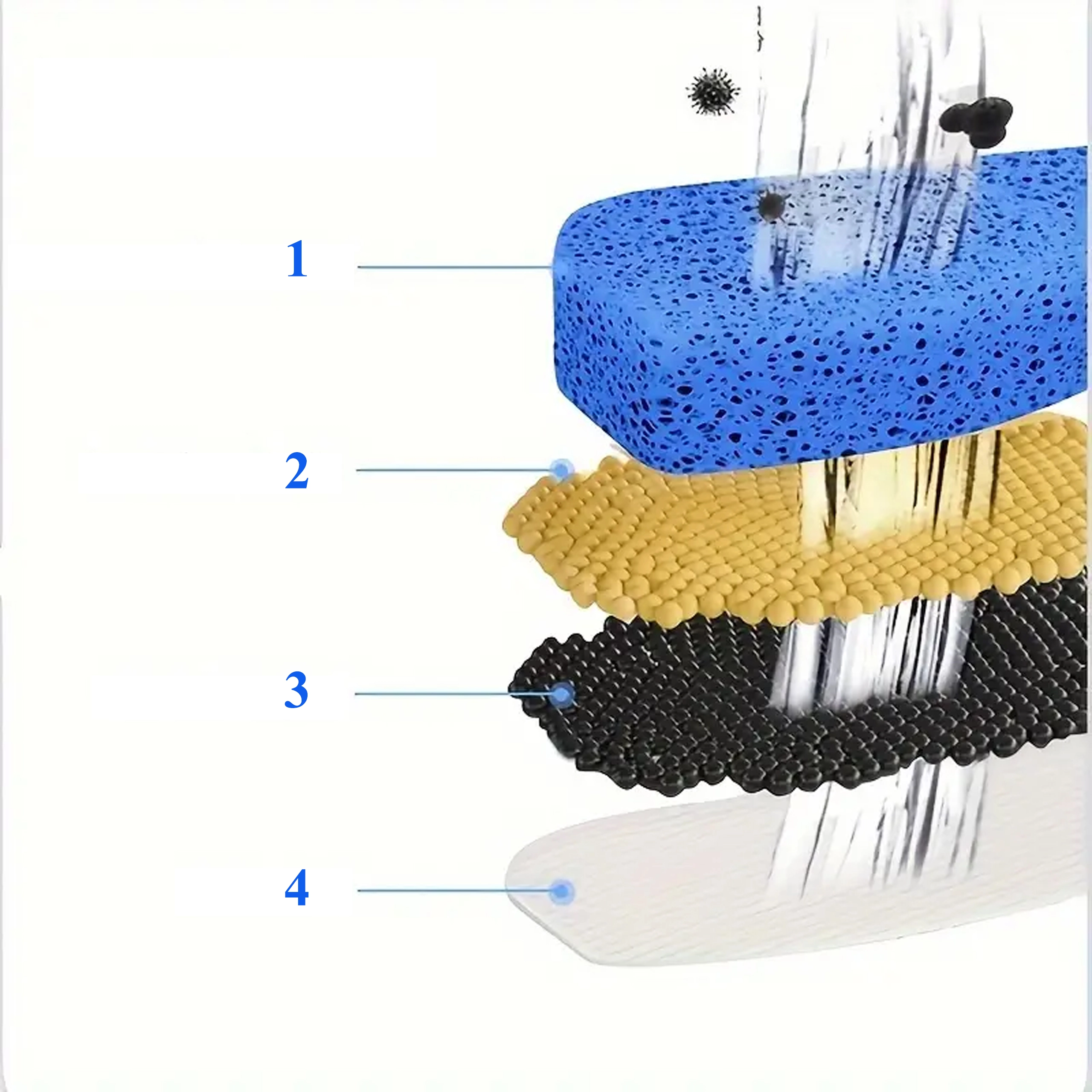 Udskiftelige filtre opfanger hår og mekaniske urenheder, hjælper med at reducere lugt og forbedrer vandkvaliteten til daglig drikning.