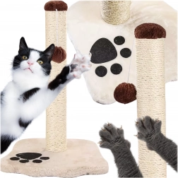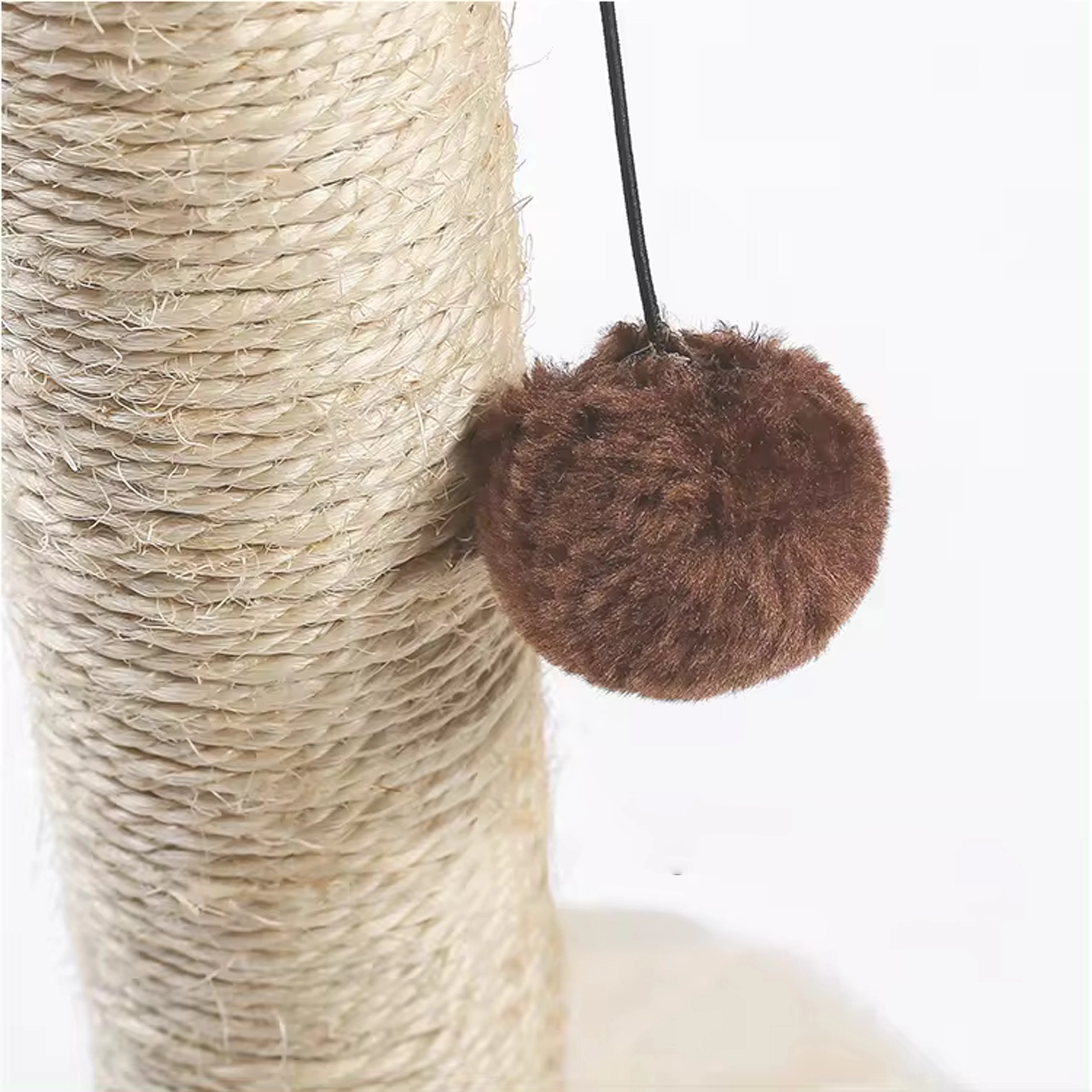 Det praktiske kradsetræ til katte kombinerer en robust sisalstolpe med en blød plysbase for behagelig og sikker brug. Det giver katte mulighed for naturlig slibning af kløer, så dine møbler og tæpper beskyttes. Det hængende legetøj – pompon opmuntrer til bevægelse og forlænger legetiden.