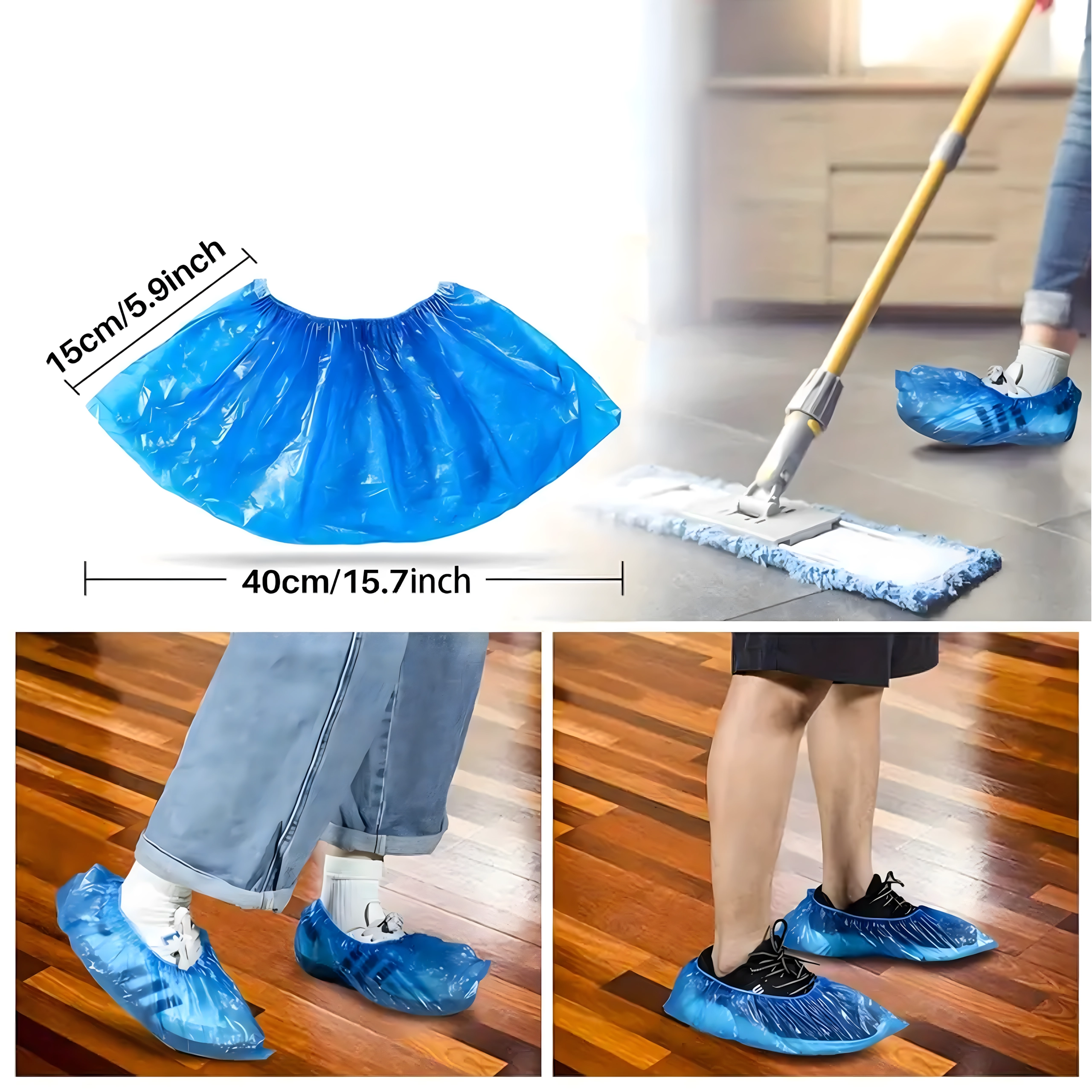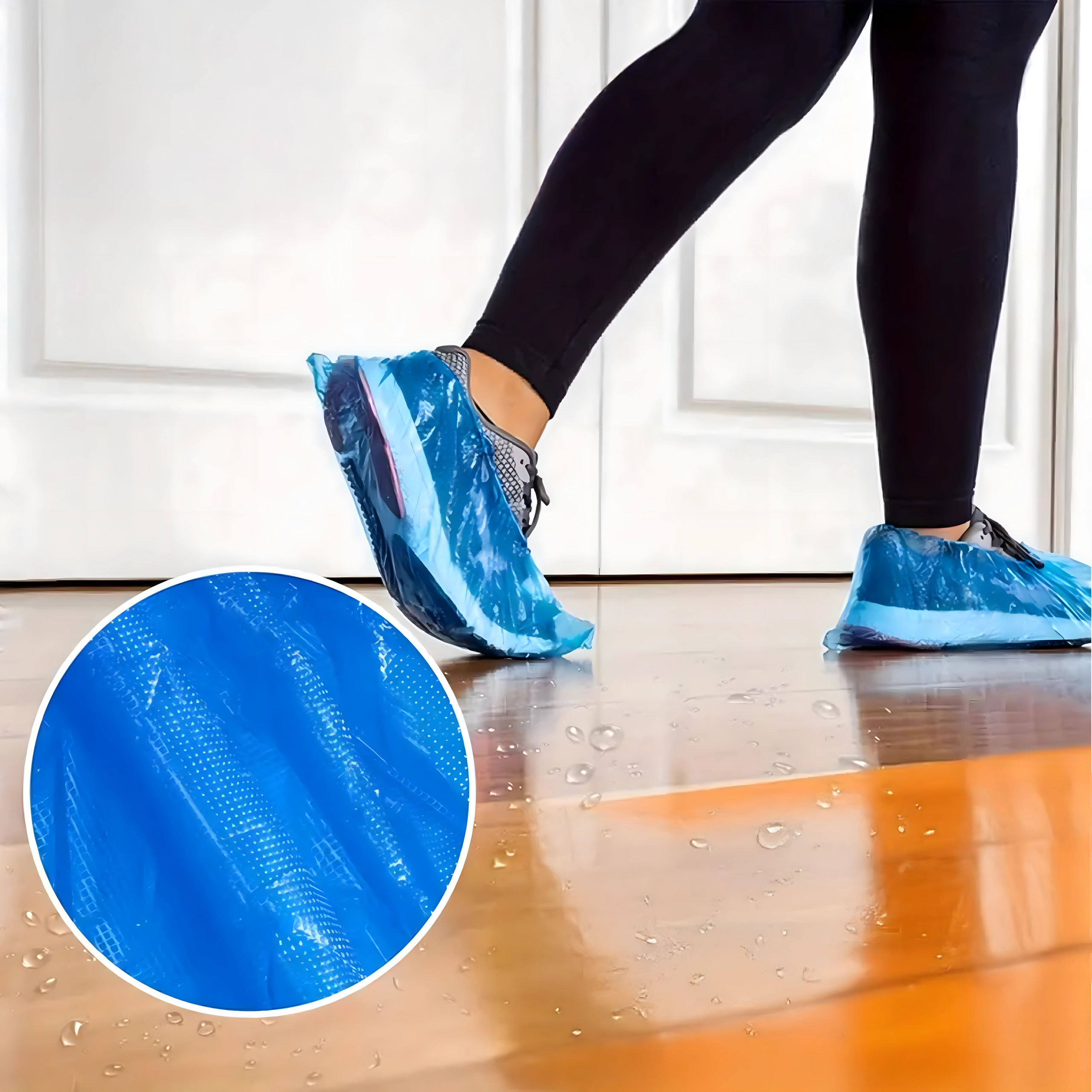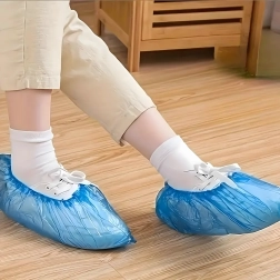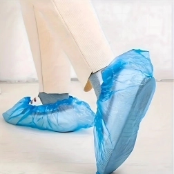 Pålidelige beskyttende overtræk holder rent indendørs selv ved krævende aktiviteter. Den lette men stærke LDPE-folie er vandafvisende og kan let trækkes over de fleste typer fodtøj. Den elastiske kant sikrer fast pasform samt hurtig på- og aftagning.