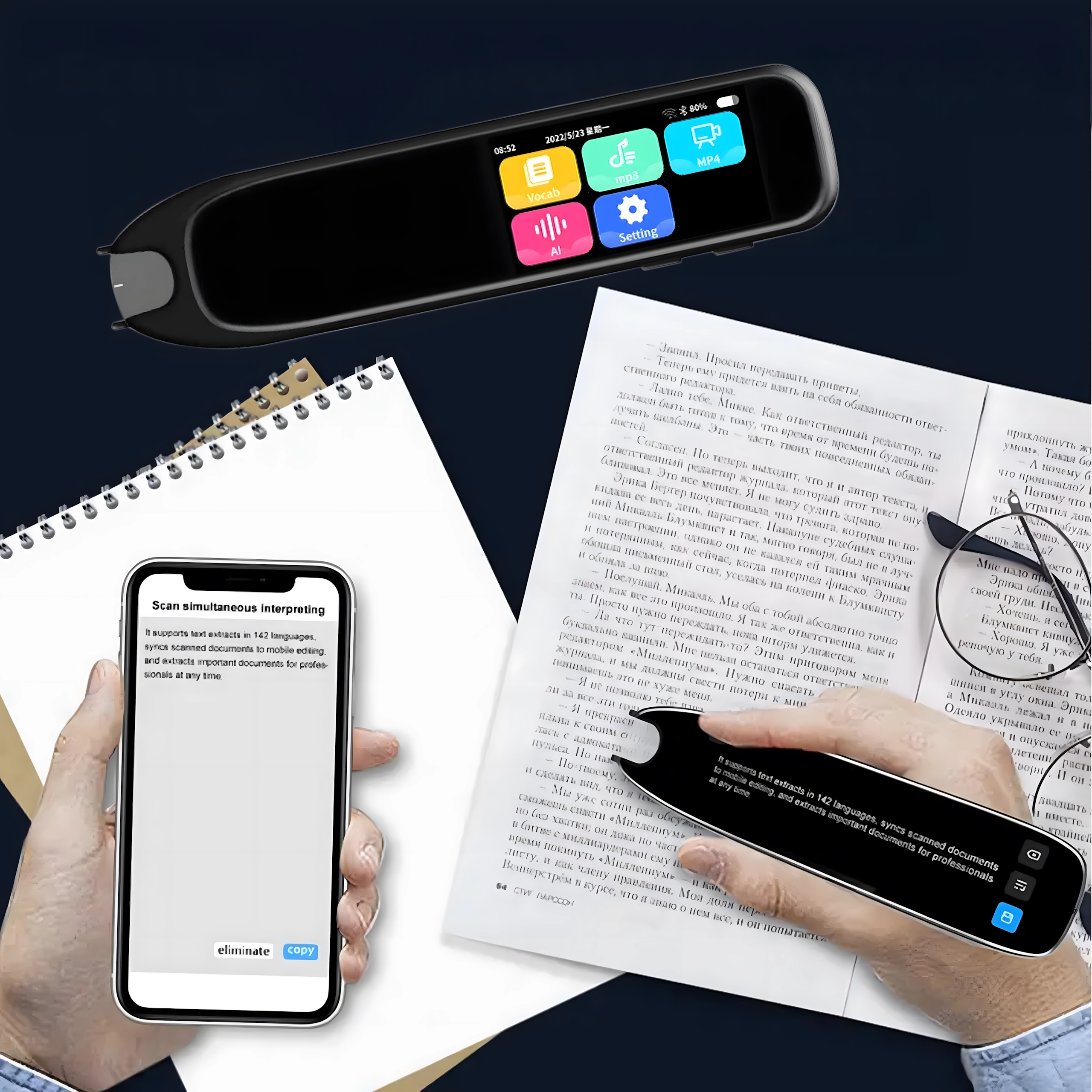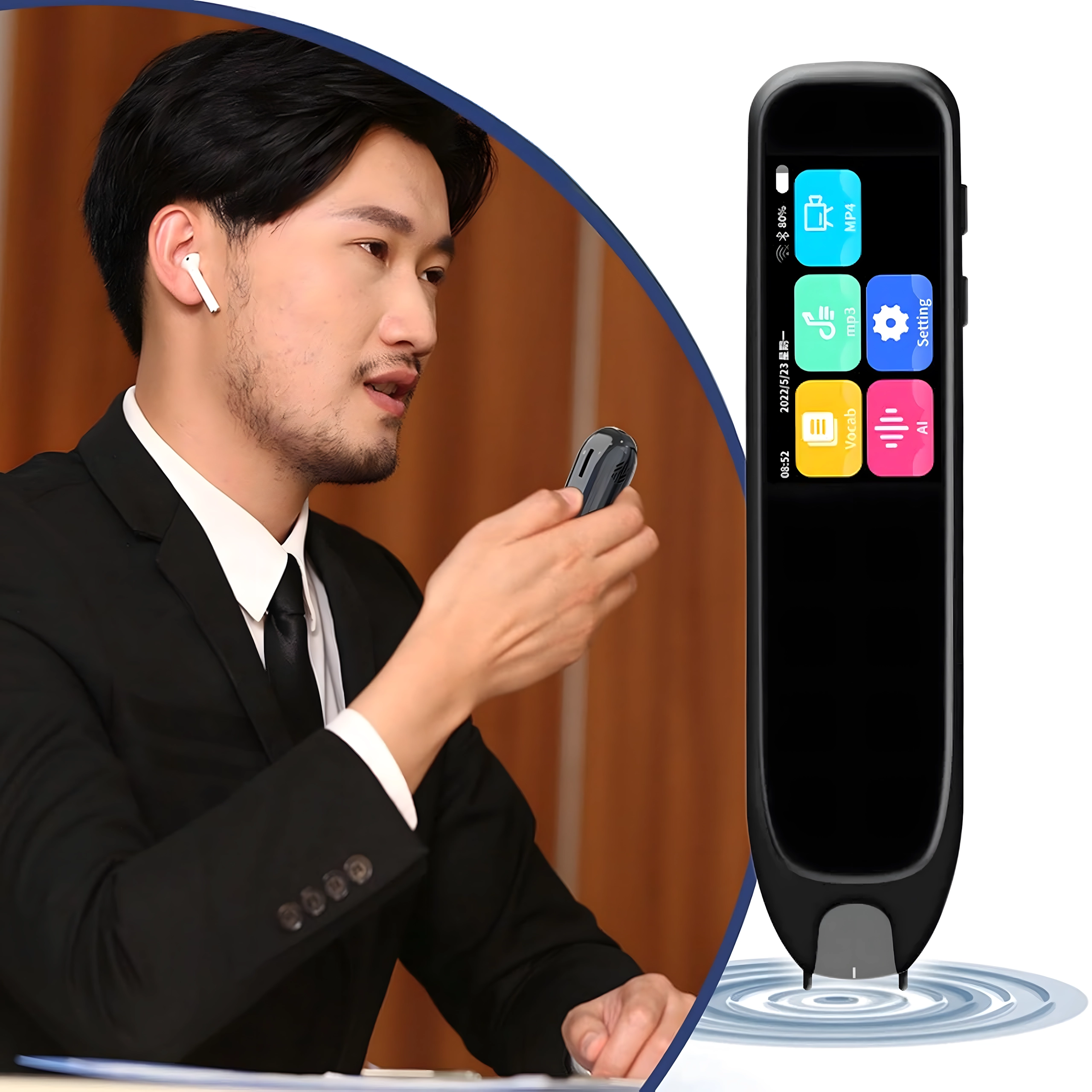 Det smarte oversættelsespenn er en moderne elektronisk oversætter af tekst og tale, som understøtter op til 132 sprog. Den tilbyder øjeblikkelig oversættelse af tale og trykt tekst i realtid, har touchskærm, OCR-scanning, højtlæsning af udtale samt lydoptagelse – ideel til rejsende, studerende, lærere og professionelle i internationale miljøer. Kræver internetforbindelse.