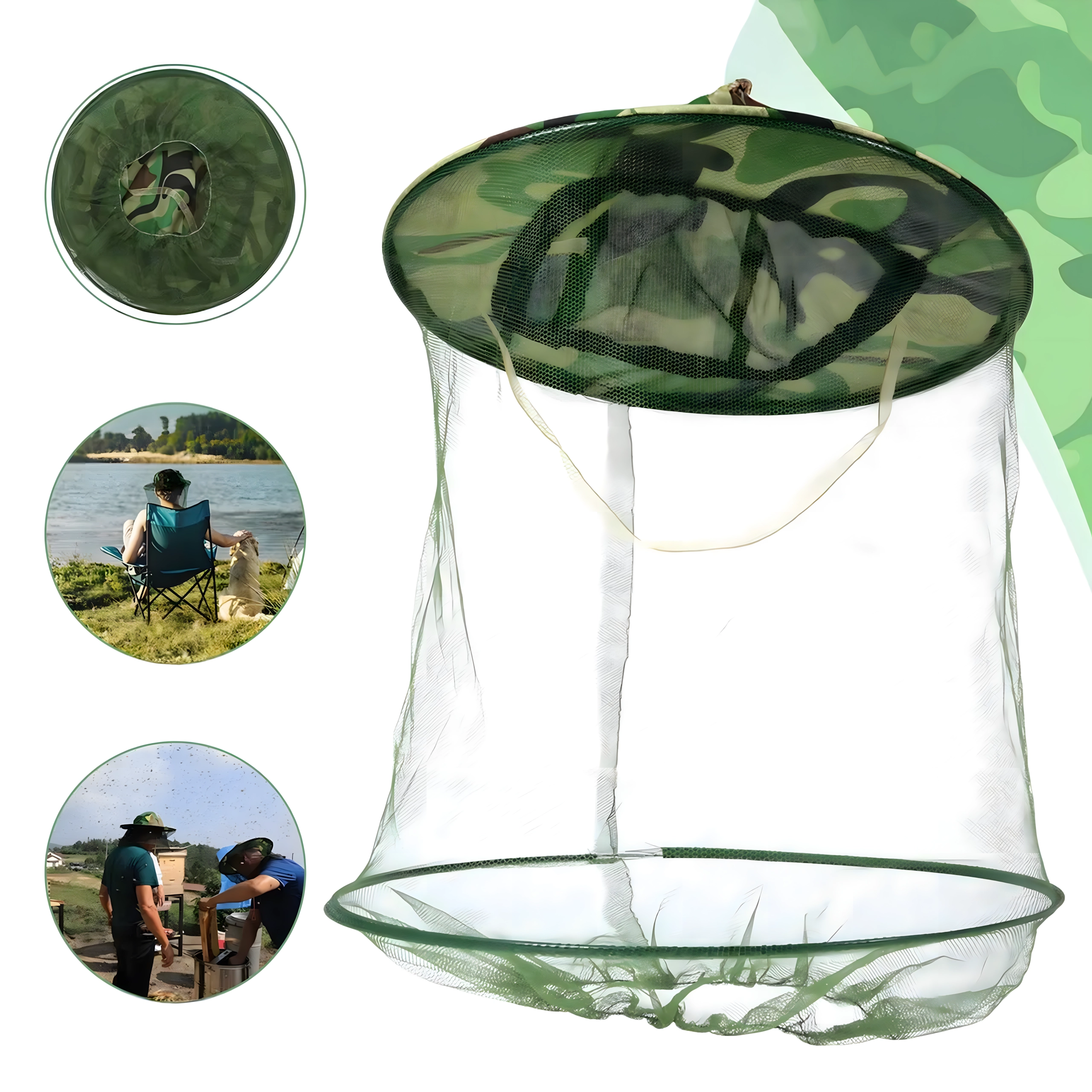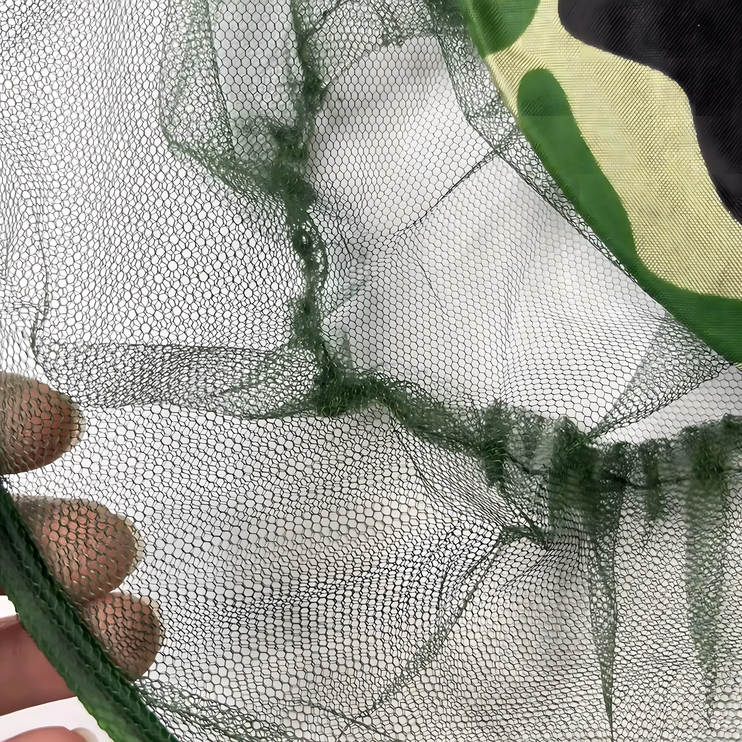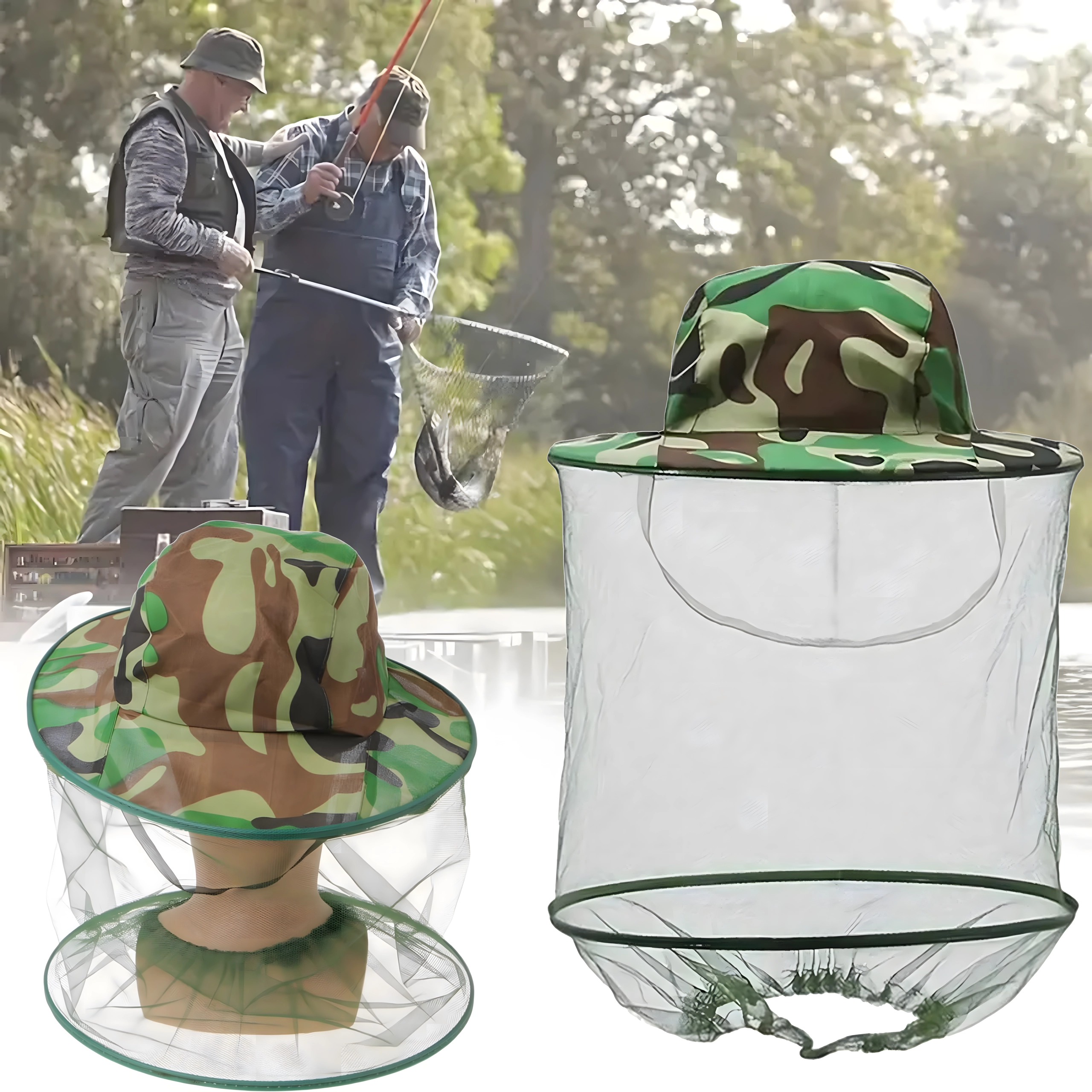 Den brede skygge holder nettet væk fra ansigtet, og camouflage-mønstret passer til lystfiskere, jægere og outdoor-entusiaster.