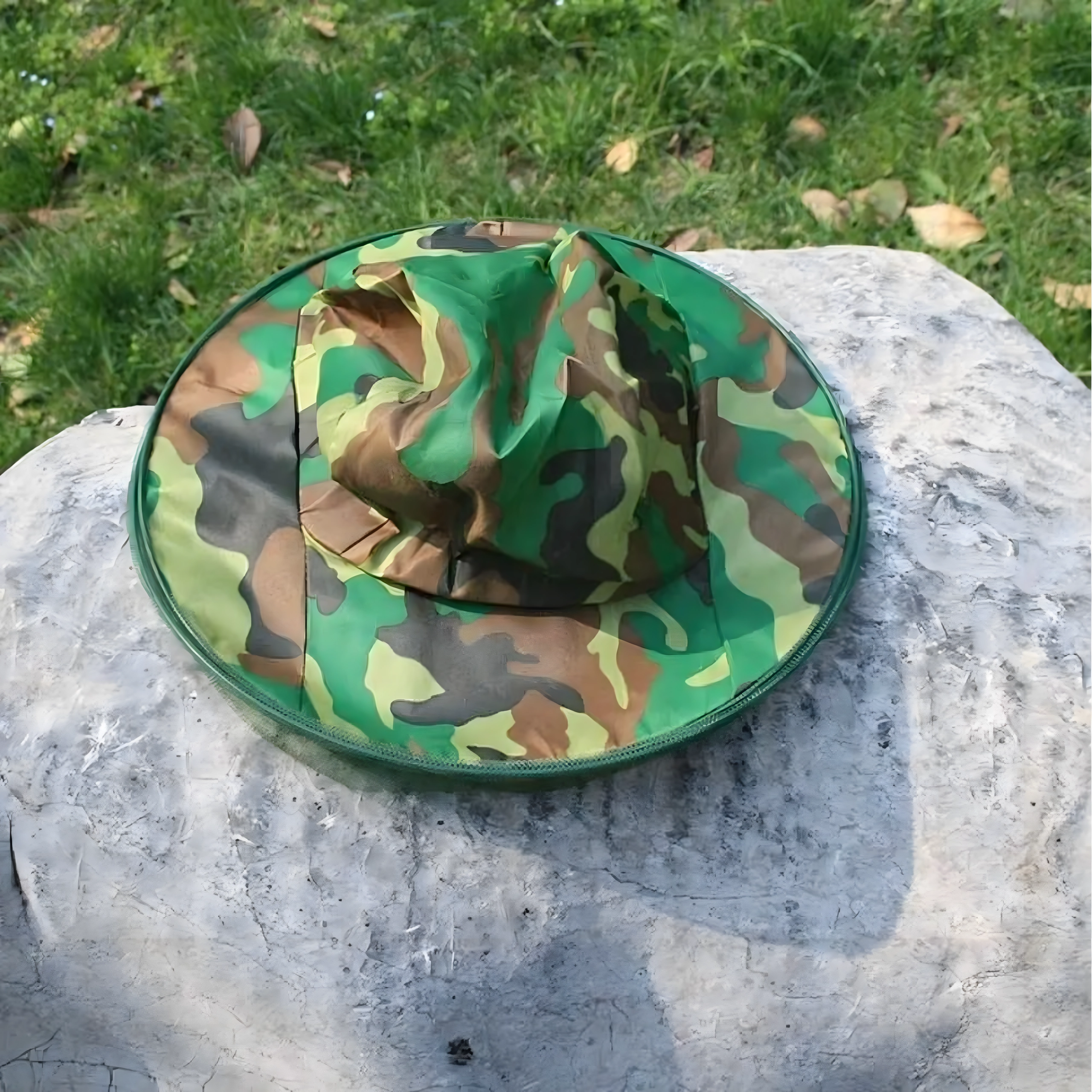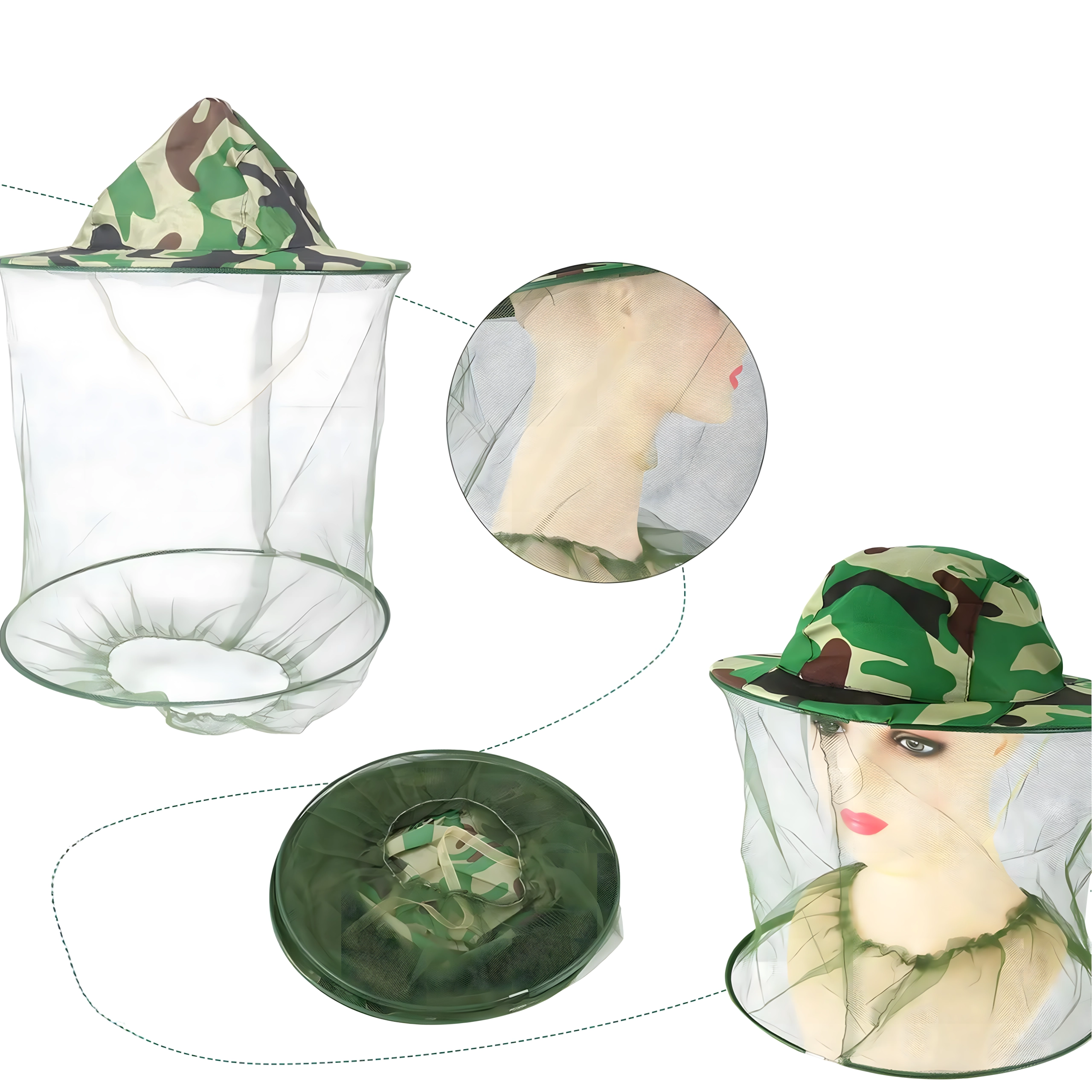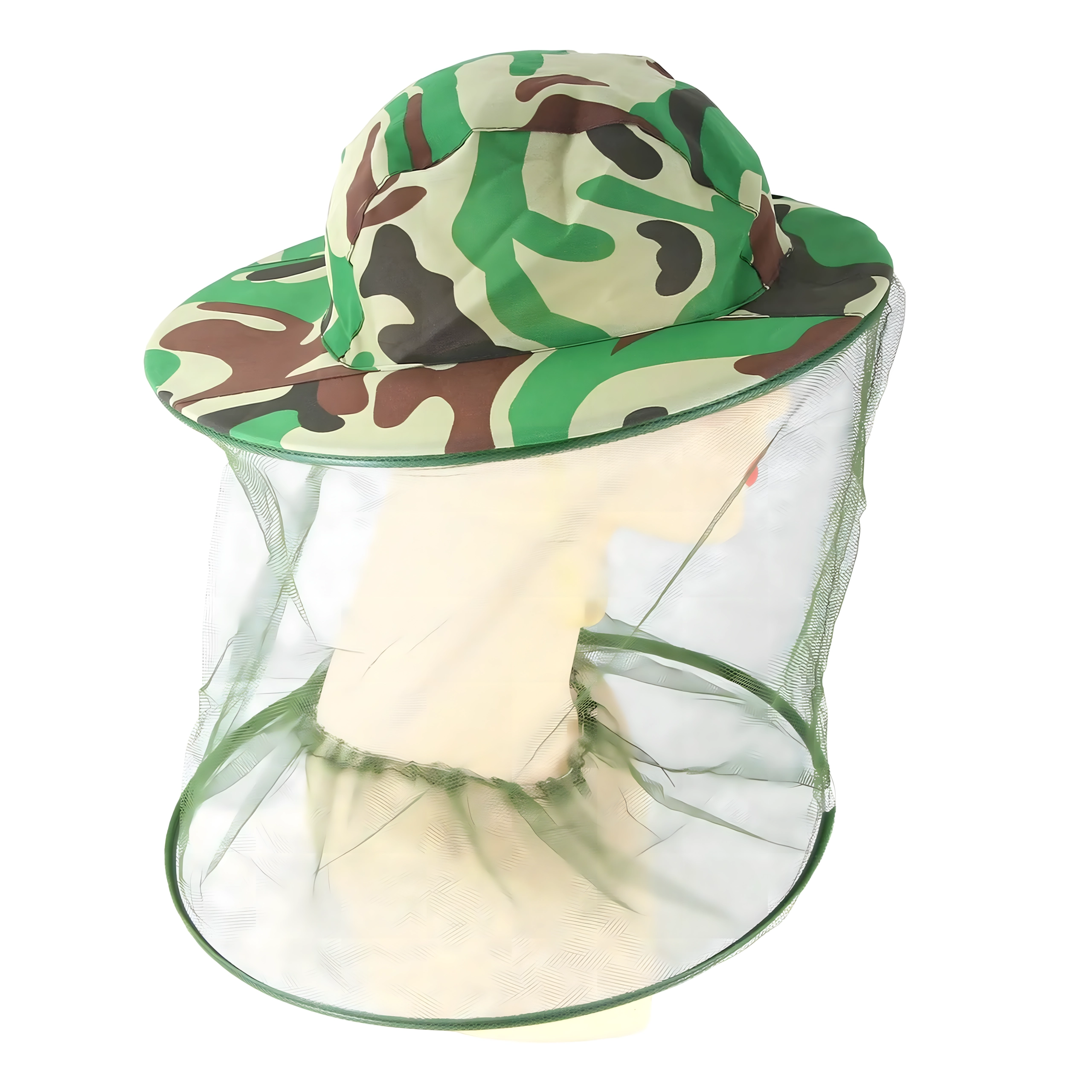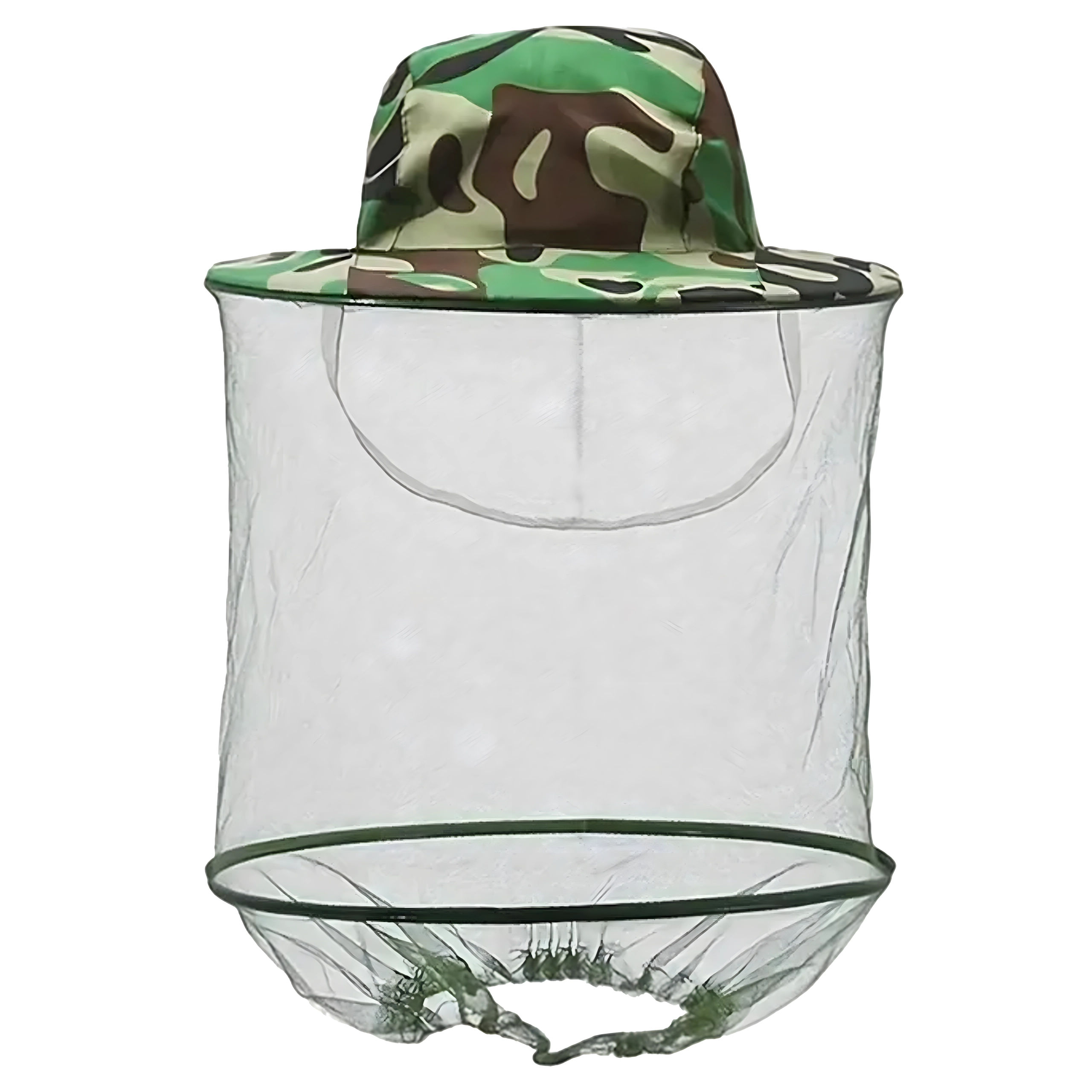 Den brede skygge holder nettet væk fra ansigtet, og camouflage-mønstret passer til lystfiskere, jægere og outdoor-entusiaster.