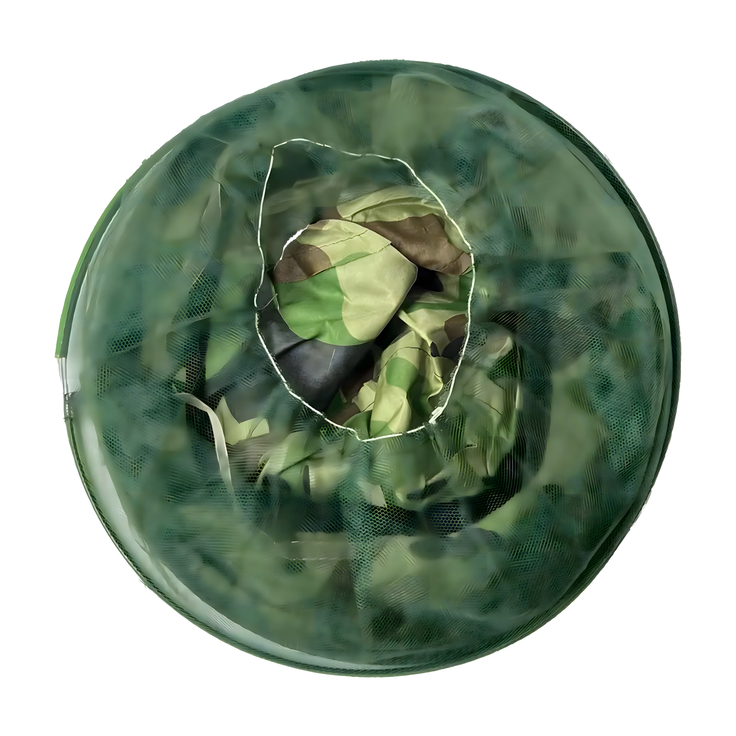 Camouflage-hatten med fint net beskytter effektivt ansigt og hals mod insekter, samtidig med at den bevarer god synlighed og luftgennemstrømning. Takket være den brede skygge og det lette materiale er den behagelig selv ved længere brug ved vandet, i skoven eller ved havearbejde.