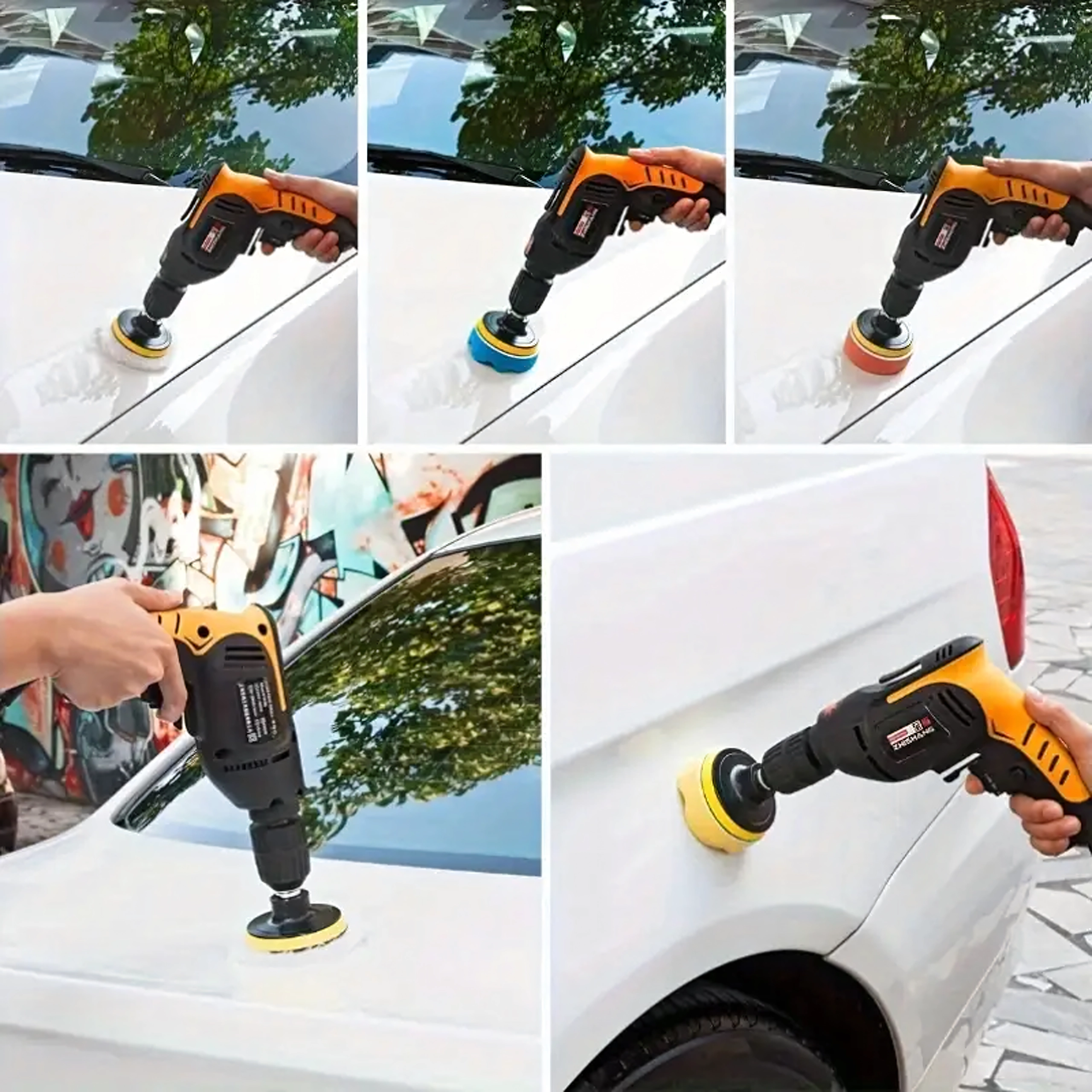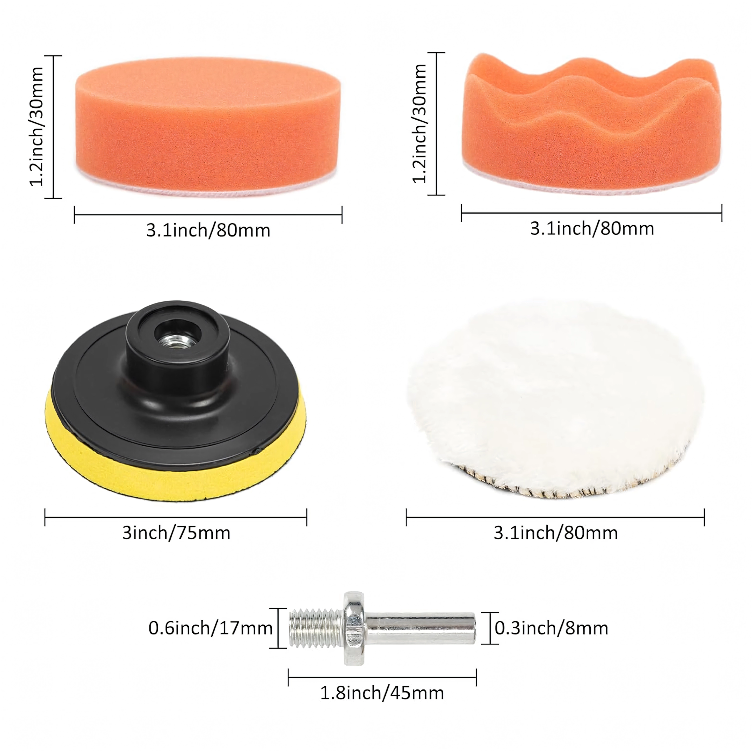 Sættet indeholder skum i forskellige densiteter og en uldskive – fra defektkorrektion til den afsluttende finish og højglans uden hologrammer.