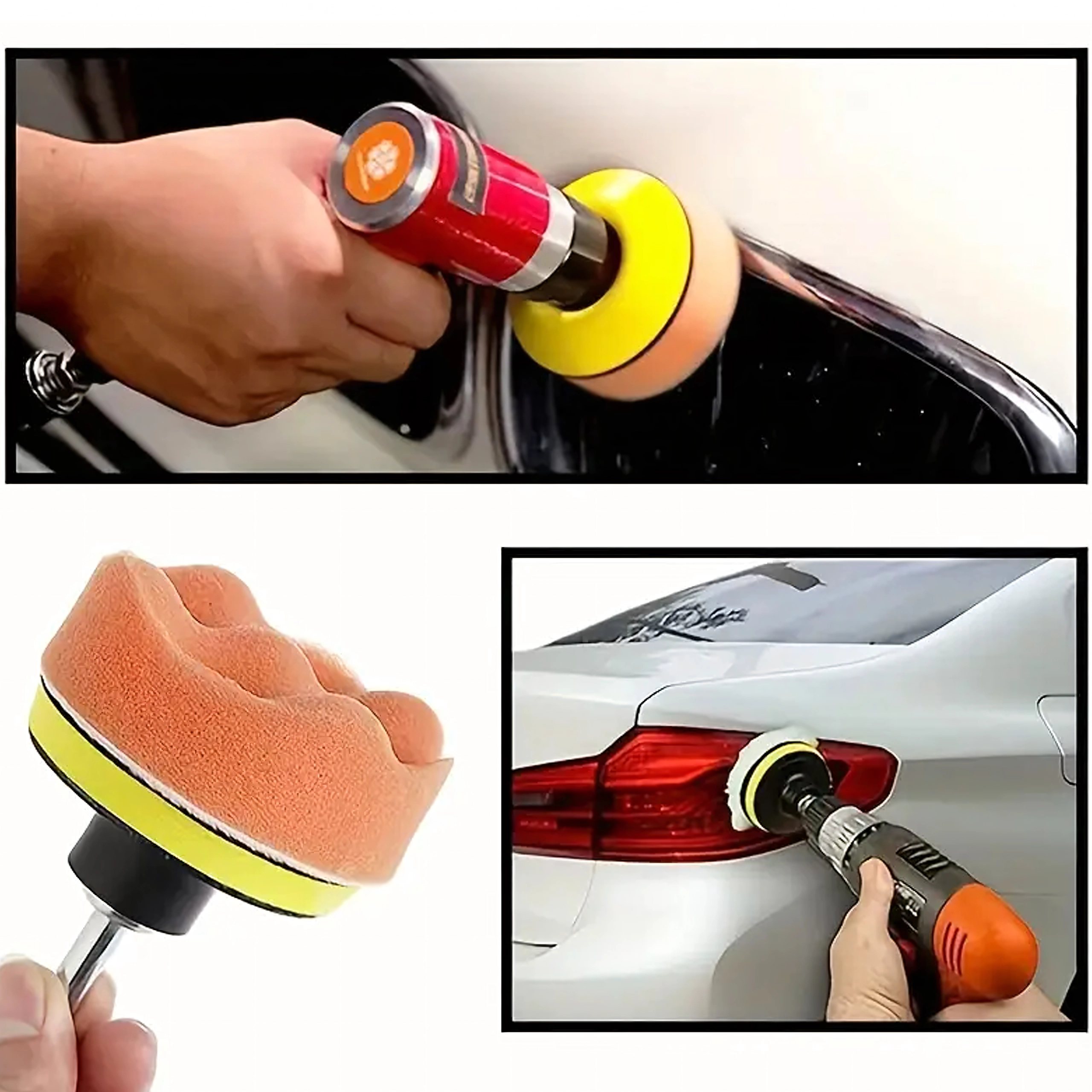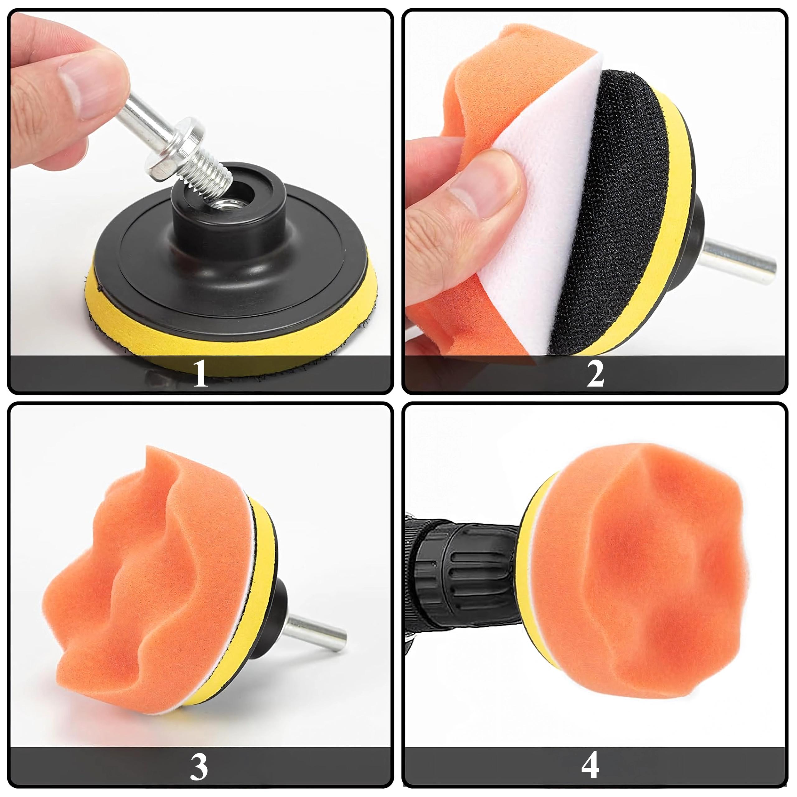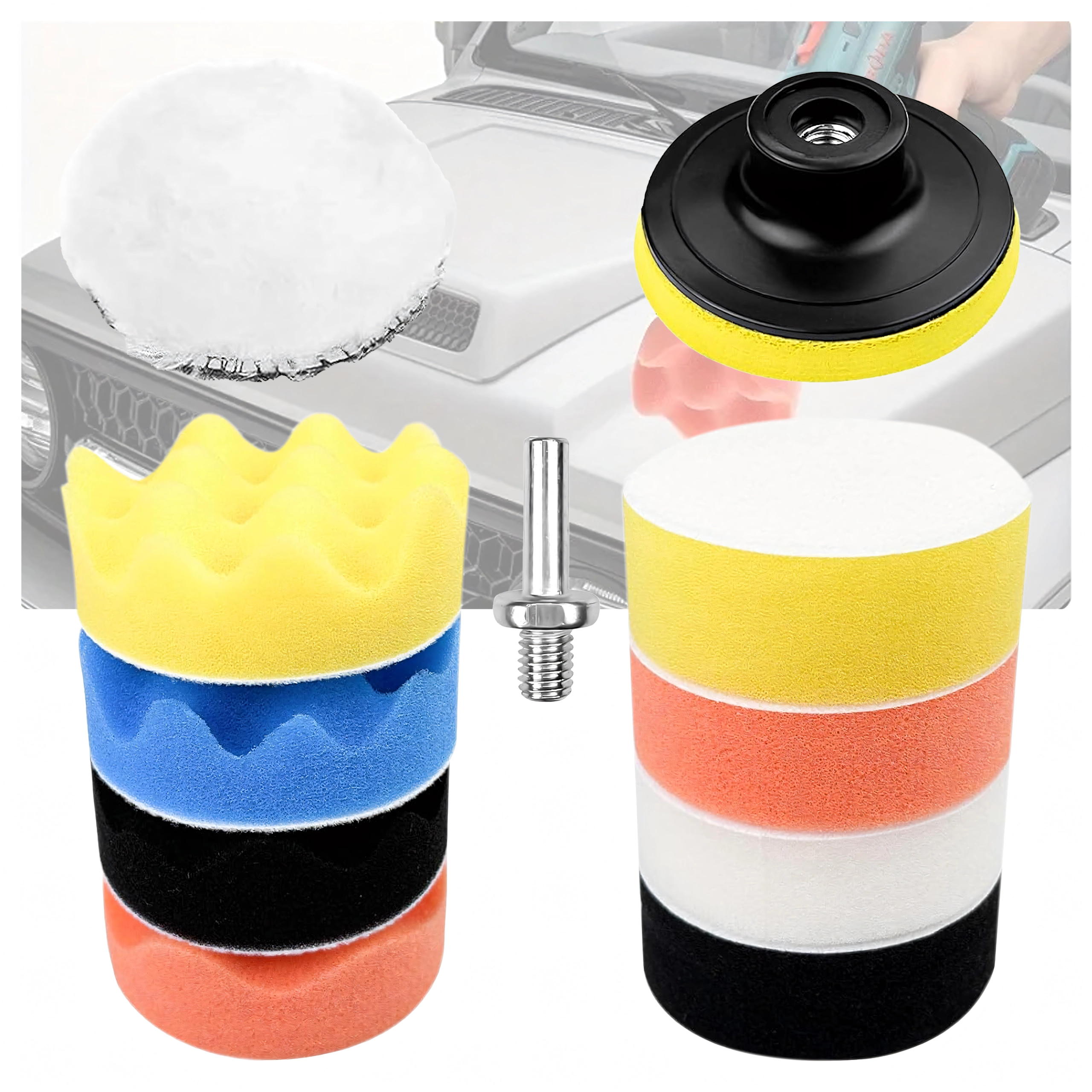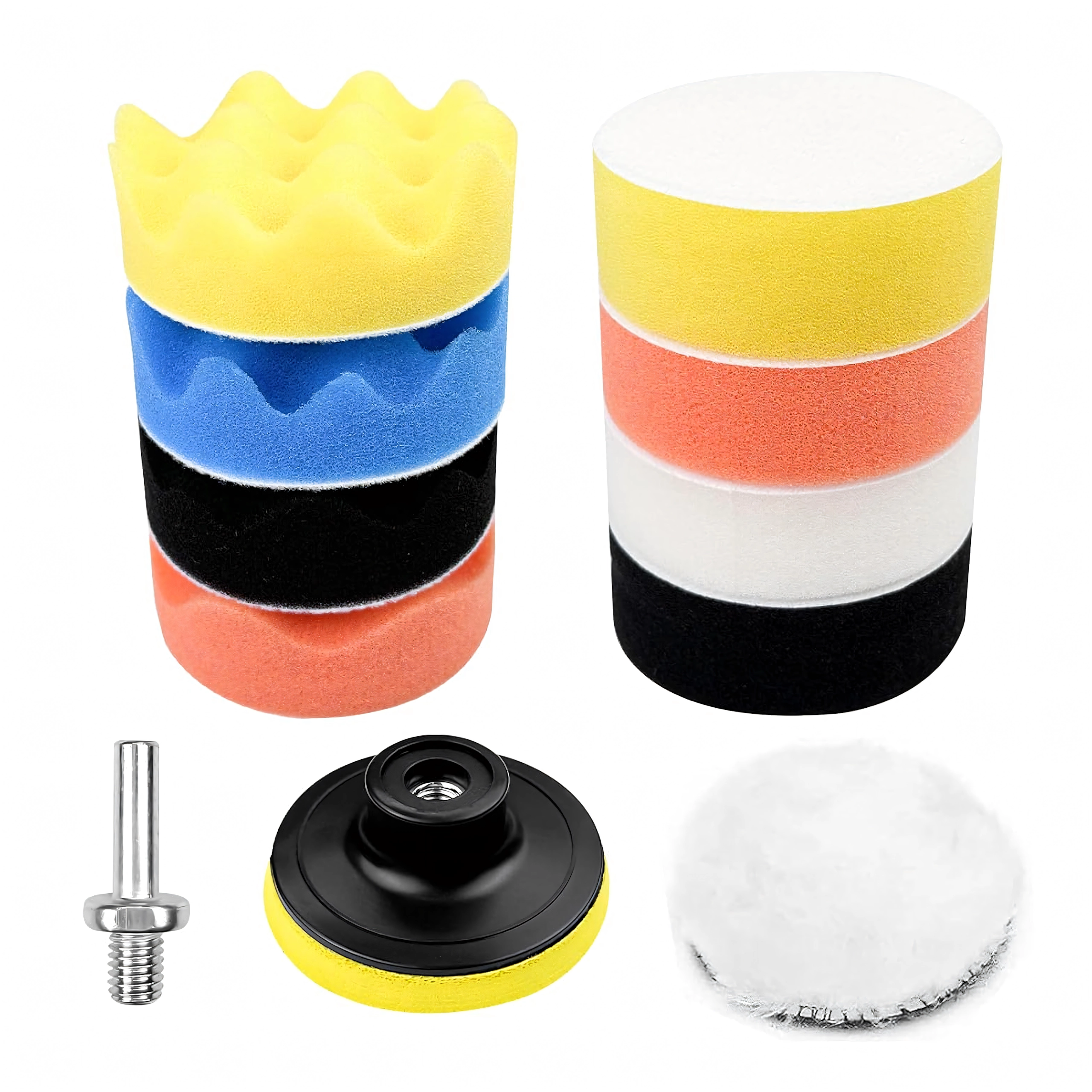 Dette praktiske 11-delte sæt polersvampe med adapter gør det nemt at fjerne små ridser, genskabe glans og påføre voks eller pasta jævnt. Den varierende skumdensity og -struktur er ideel til trin fra cut til slutfinish, mens fleece/uld accelererer poleringen og øger glansen.