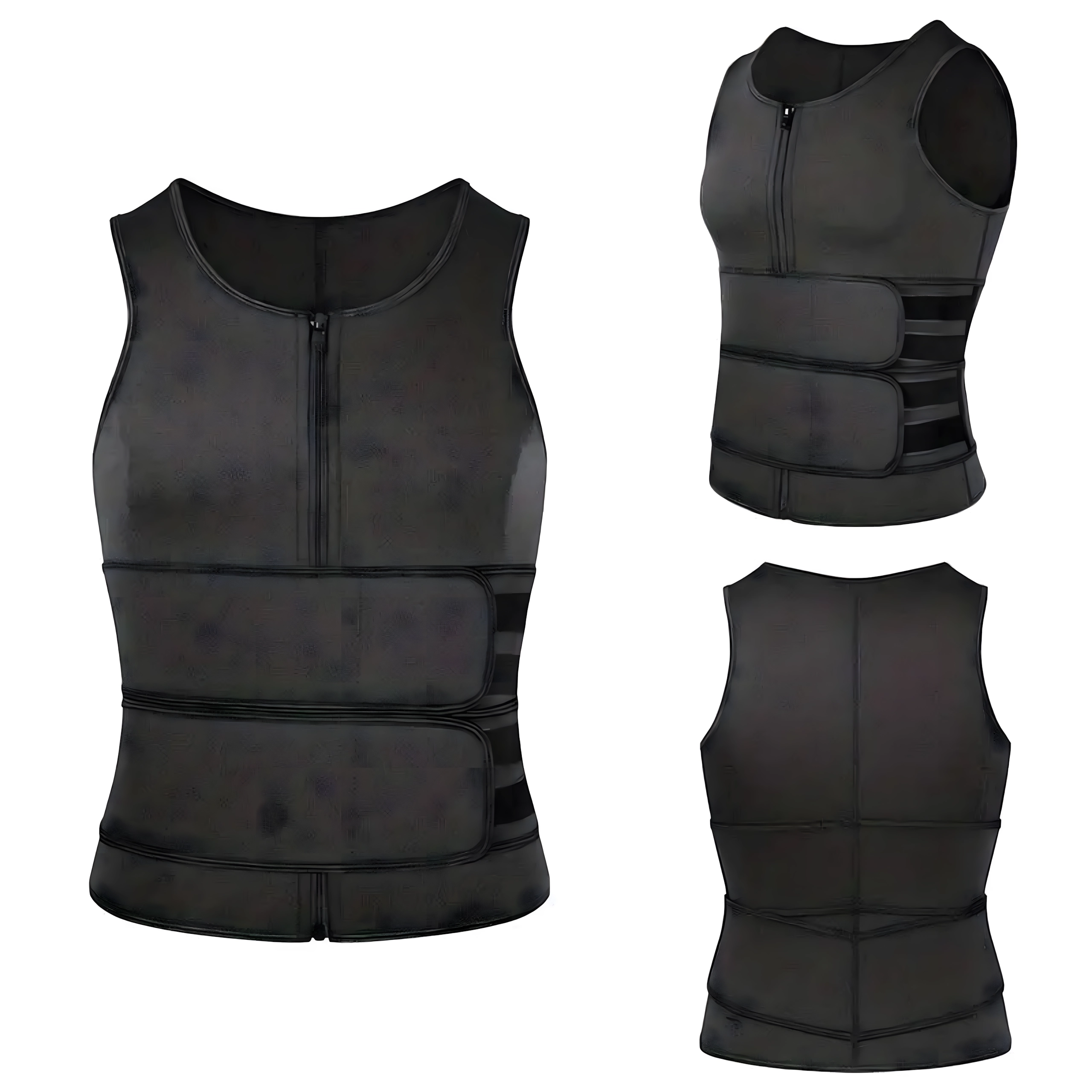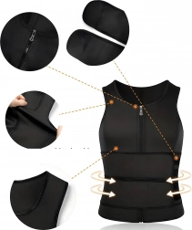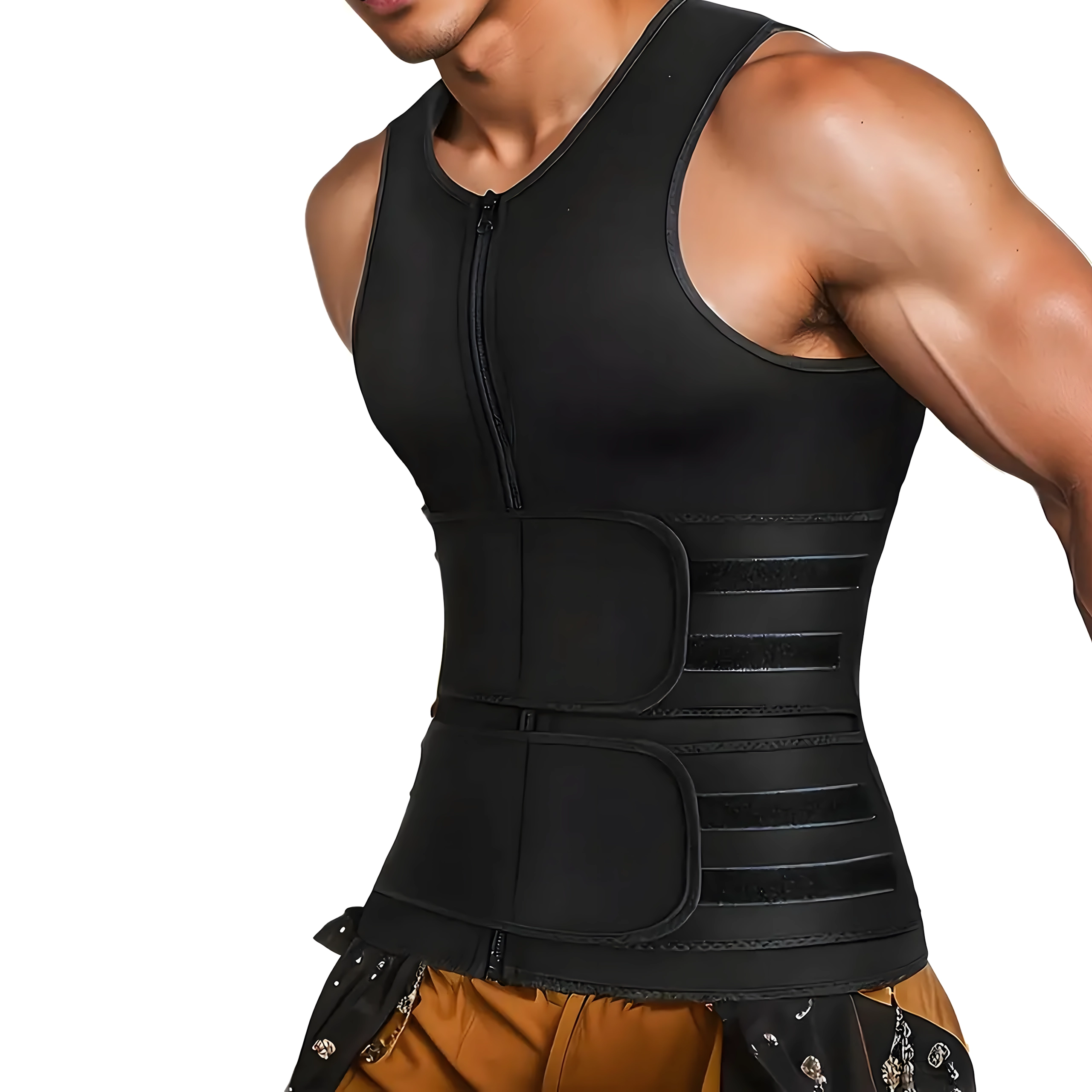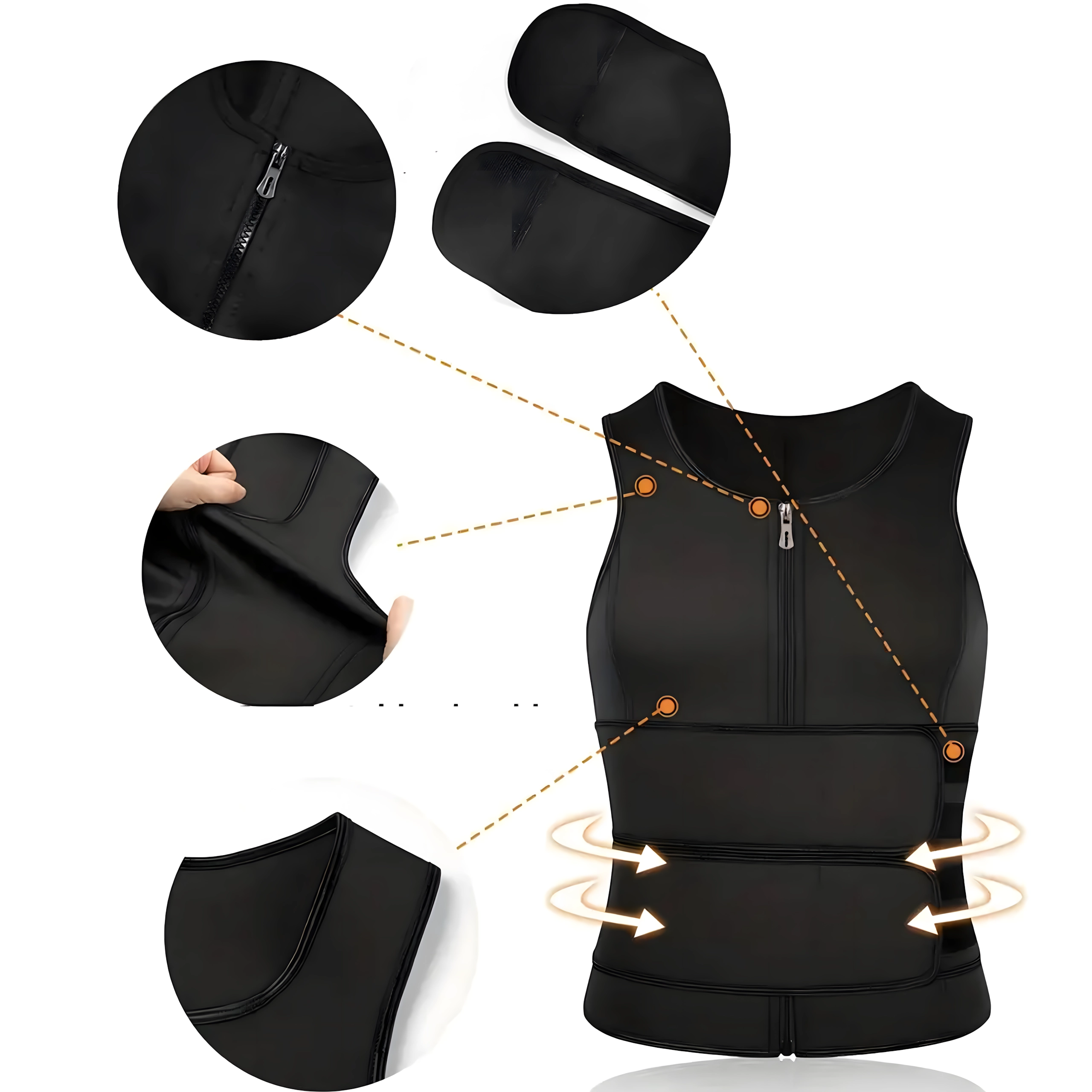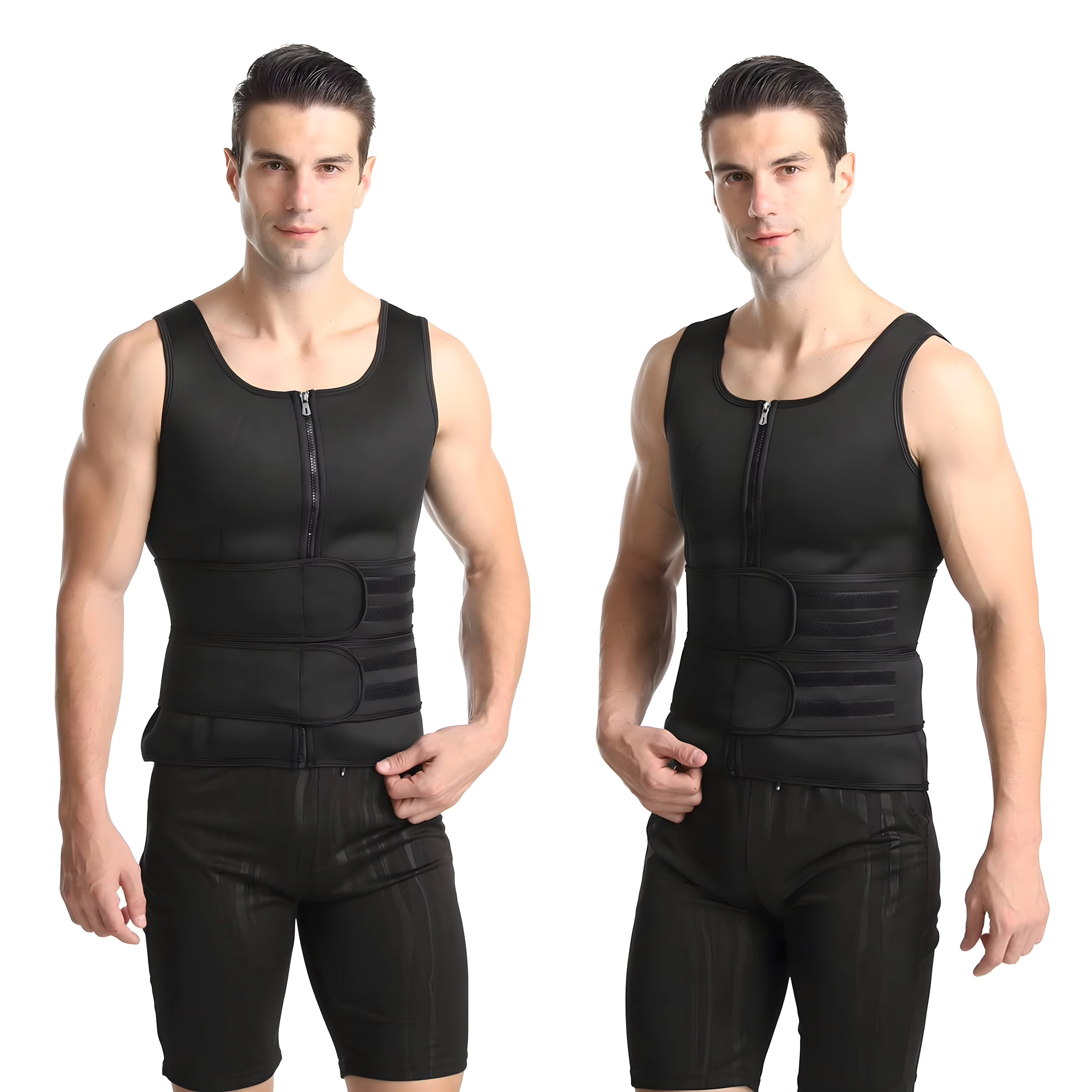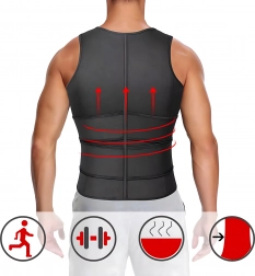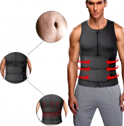 Denne herre kompressions-saunavest i kvalitetsneopren øger kropstemperaturen under træning, hvilket hjælper med hurtigere svedproduktion og effektiv taljeformning. En fuldlængde-lynlås gør den nem at tage på, og to brede justerbare velcroremme gør det muligt at indstille den præcise stramning i mave- og coreområdet.