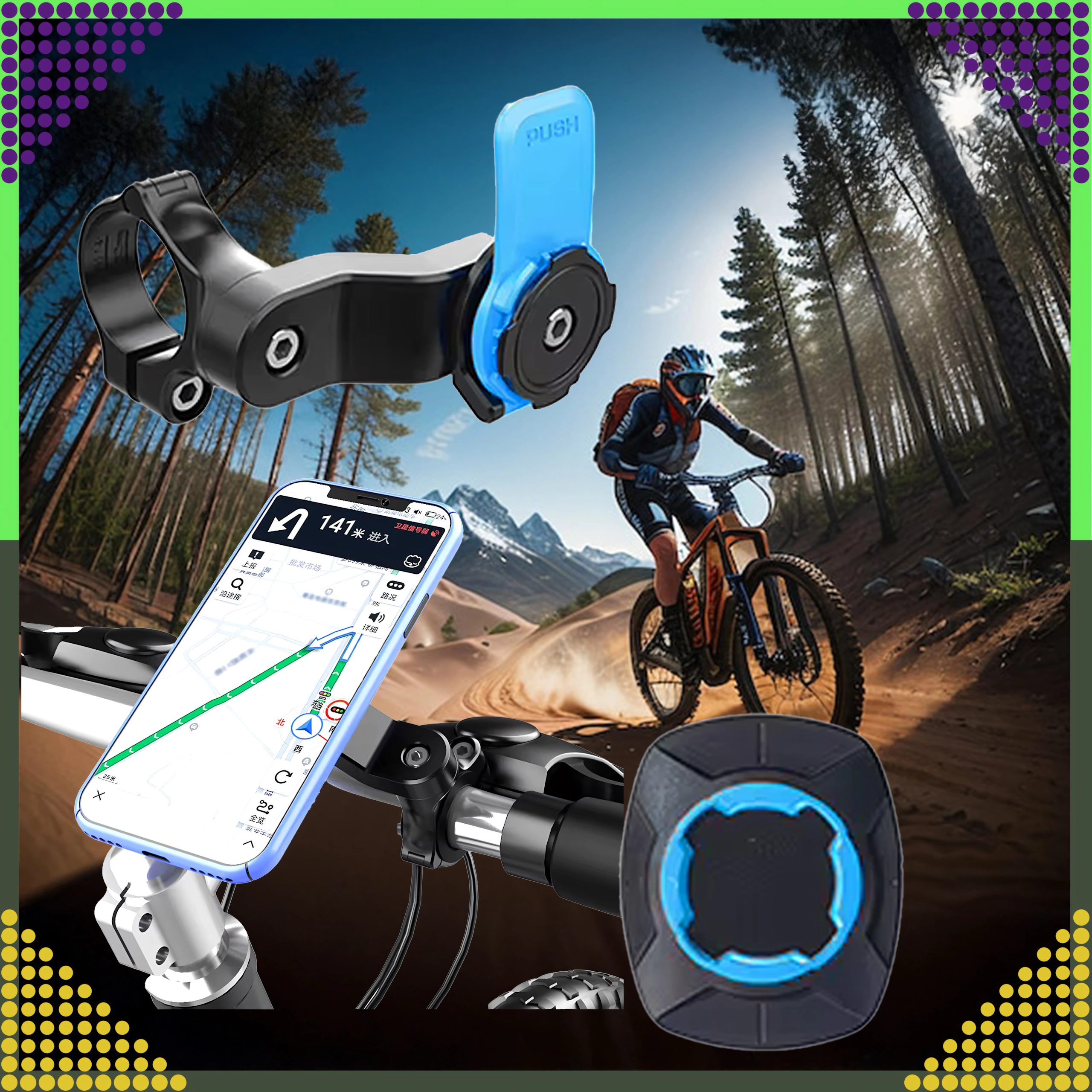 Holderen er velegnet til både racercykler og mountainbikes, motorcykler og ATV'er. Drejeleddet gør det muligt at justere vinkel og rotere telefonen til både lodret og vandret visning, ideelt til GPS-navigation og sportsapps.