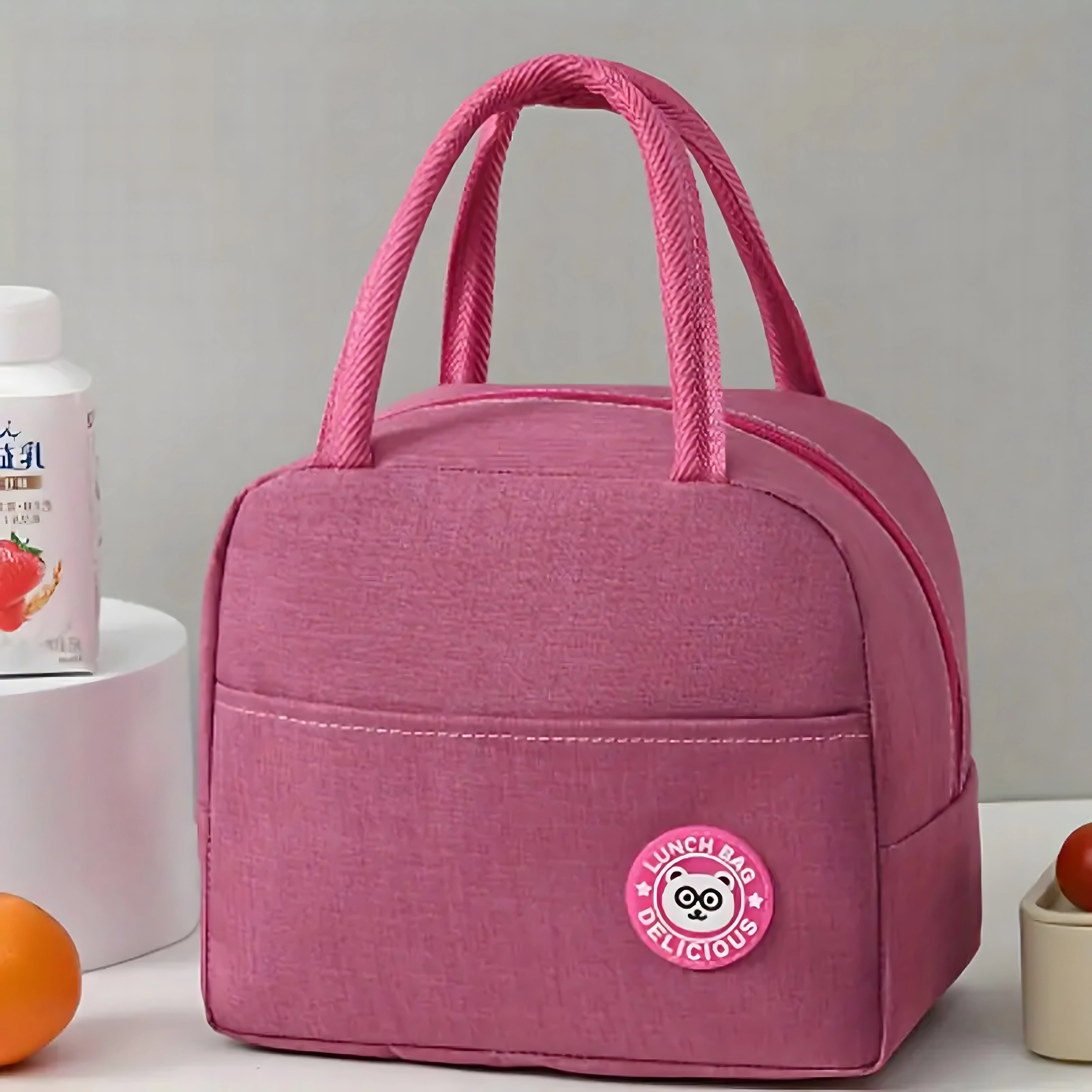 Den lyserøde termotaske er lavet af et slidstærkt og let materiale og er indvendigt udstyret med reflekterende termofolie for langvarig temperaturbevarelse – både koldt og varmt. Lynlåslukning beskytter indholdet, og de dobbelt behagelige hanke sikrer nem bæring hver dag.