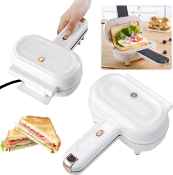 Lav sprøde toasts og lækre sandwiches på få minutter. Denne kompakte elektriske sandwichmaker med en effekt på 700 W har non-stick plader for nem rengøring, et varmeisoleret håndtag for sikker brug og lysdioder der viser opvarmning og klar-til-brug. Ideel til hjemmet, kontoret og hele familien.